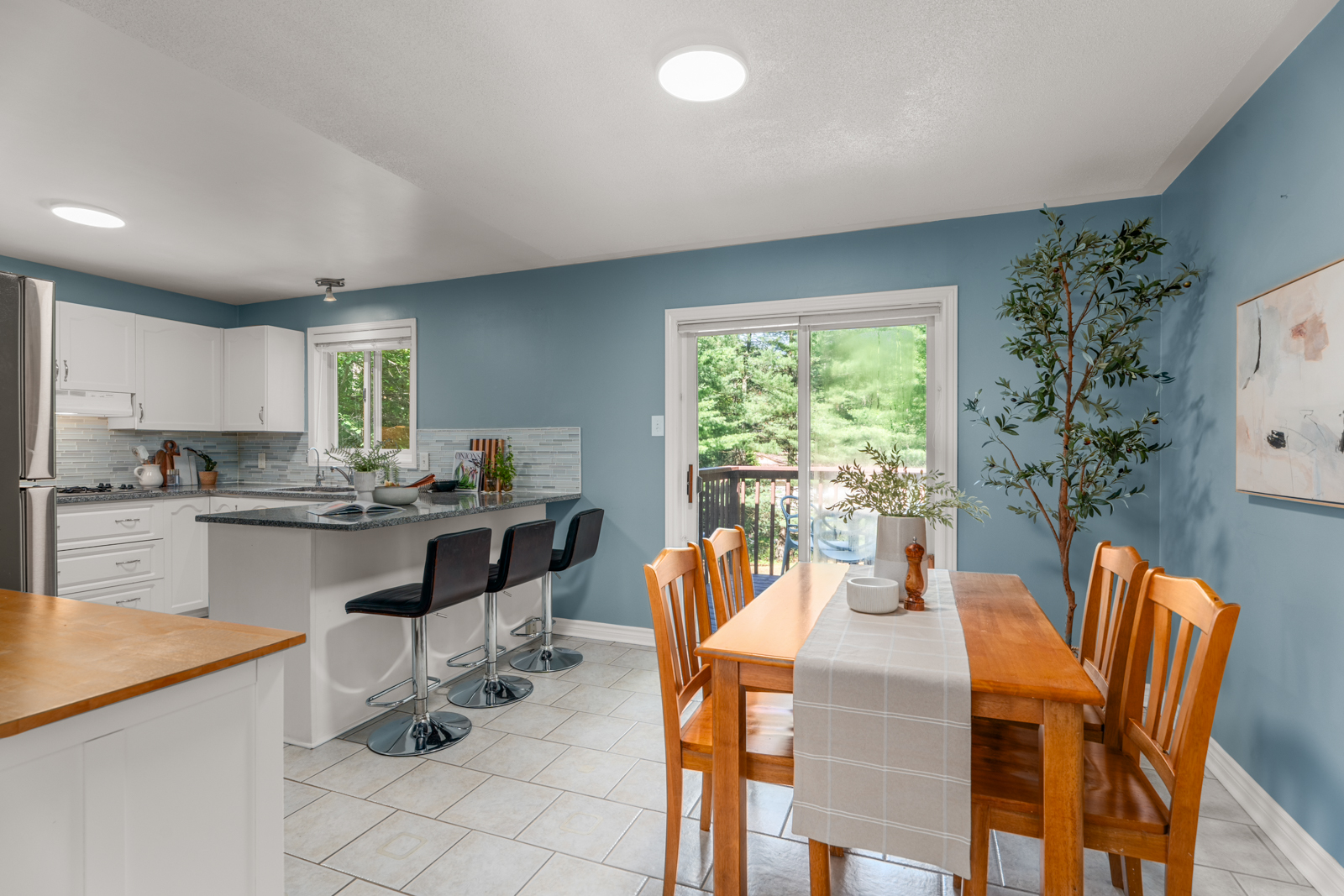 Just down the road, the sandy shores of Constance Bay Beach offer the perfect spot to swim, paddle, launch a boat, or unwind with a sunset over the Ottawa River. A few minutes away, you'll find the entrance to Torbolton Forest, a 260-hectare protected greenspace conservation area with winding trails and towering pines; ideal for hiking, biking, snowshoeing, or simply losing yourself in nature. In winter, it offers nearly 30 km of groomed cross-country ski trails and a marked snowmobile route running down the middle of the forest, creating a peaceful playground for cold-weather adventure. Inside, the home offers comfort and functionality with two bedrooms upstairs, a cheater ensuite, a second half bath, main floor laundry, and a kitchen that looks out over the trees with granite counters and a breakfast bar.