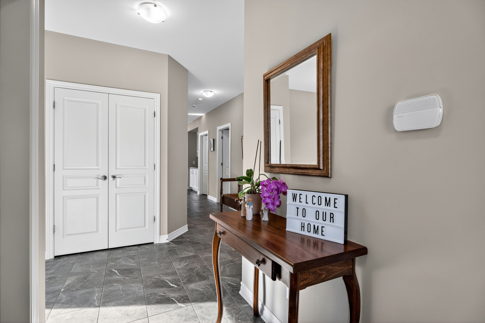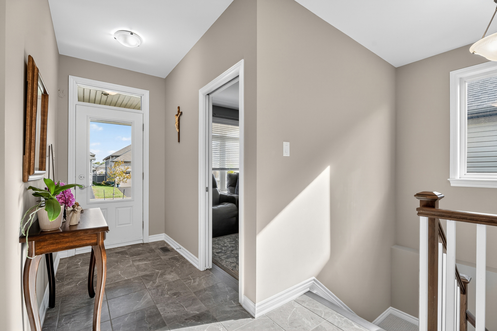 Downstairs, enjoy an additional 1,000 sq. ft. of finished space with a large rec room, a third bedroom, a 4-piece bathroom, and two storage rooms. Set on a premium wide lot, the fully fenced backyard is perfect for relaxing, complete with interlock patio, pergola, and privacy. The extra-wide oversized two-car garage with inside entry provides ample space for vehicles and gear. Peace of mind comes with practical upgrades, including a Generlink 30-amp transfer switch for generator hook-up and an Eaton whole-home surge protector. Built in 2017, this move-in ready home blends modern comfort with timeless style in one of Rockland's most desirable riverfront communities.