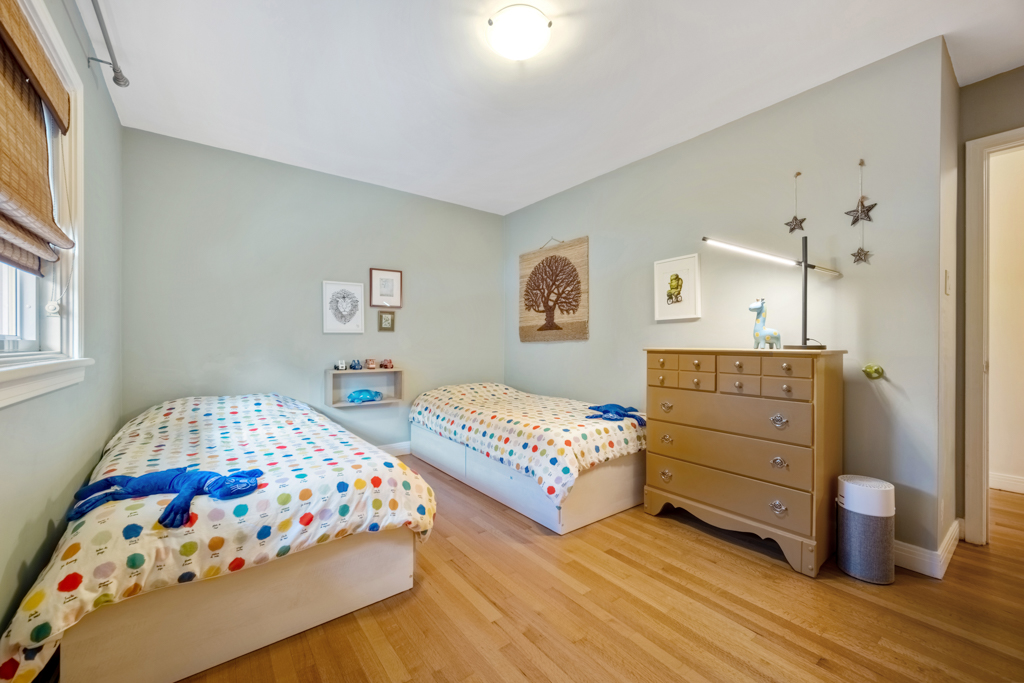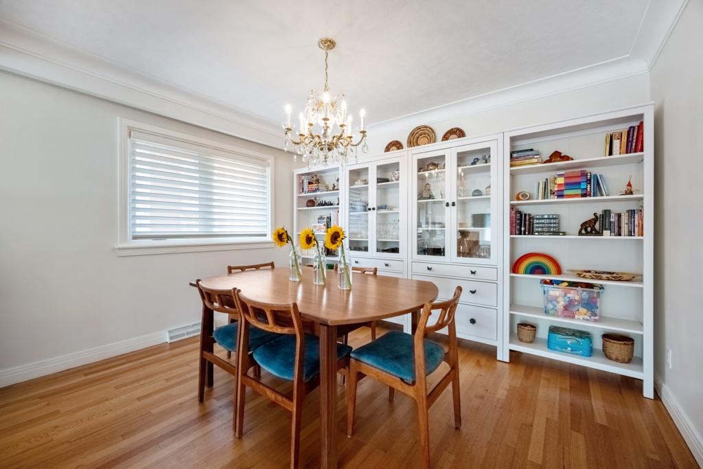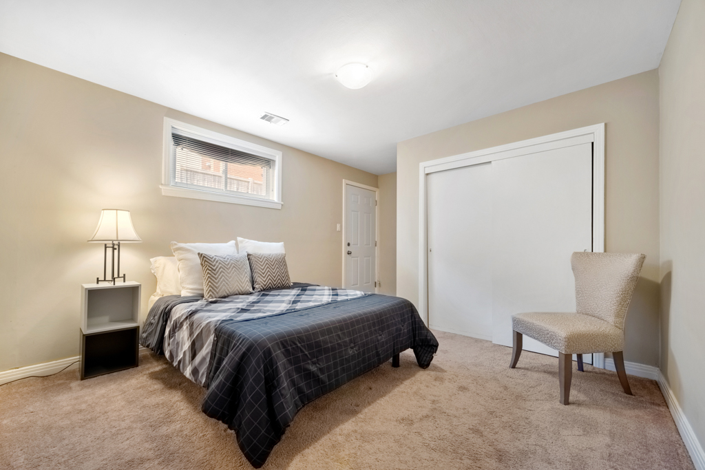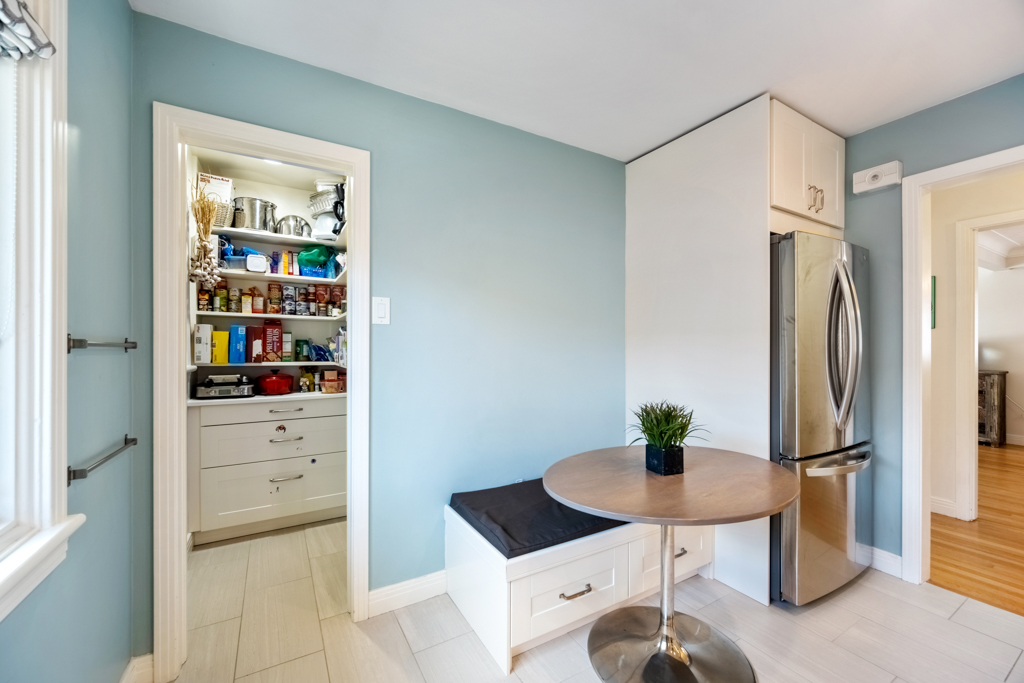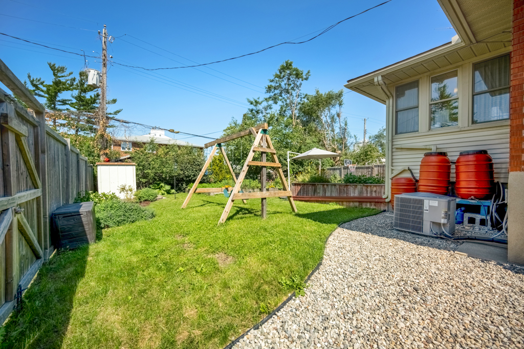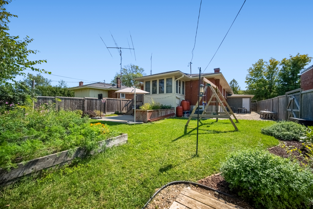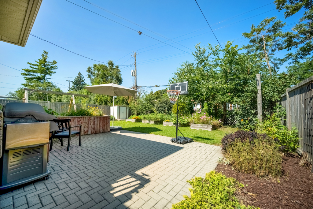 A shared laundry space with commercial washer/dryer separates the two units. The in-law suite in the basement has a separate side entrance, is refreshingly bright, has a large eat-in kitchen, a 4-pc bath and a spacious bedroom with access to its own backyard space. The backyard has an incredible amount of space with several planter boxes, lots of grassy areas and a large patio.