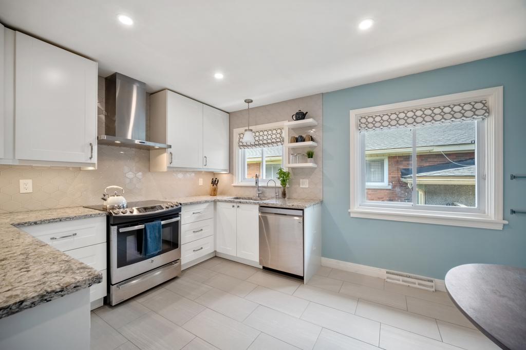 The main unit has 3 large bedrooms, 2.5 bathrooms and has been renovated throughout. It features a spacious open concept living/dining room and an updated kitchen with new cupboards, granite counters, designer backsplash, banquette seating, stainless steel appliances and a walk-in pantry. The primary bedroom has a 2-pc ensuite, a wall of closets and a beautiful sunroom overlooking the backyard. The basement offers a bright family room, storage, beautiful 4-pc bathroom and a bonus room that can be used as an office or extra bedroom.