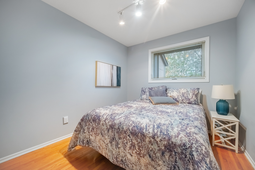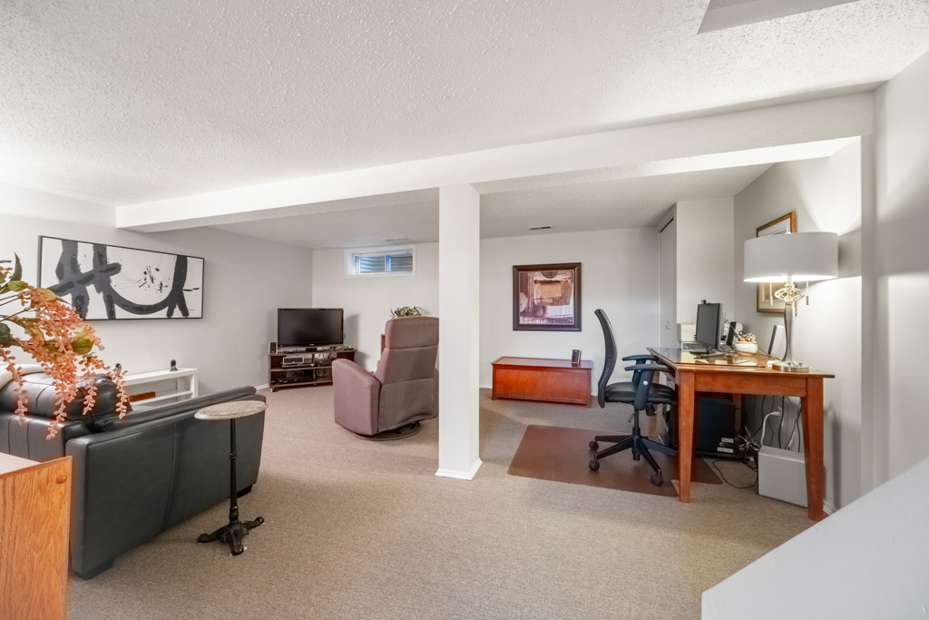 The basement has a large rec room, rare second full bathroom, laundry & storage space in the utility room. The interlocked rear-yard is west-facing with no rear-neighbours, has a newer fence & beautiful perennial garden. Secondary parking available to rent from the condo.