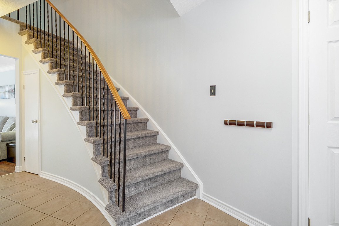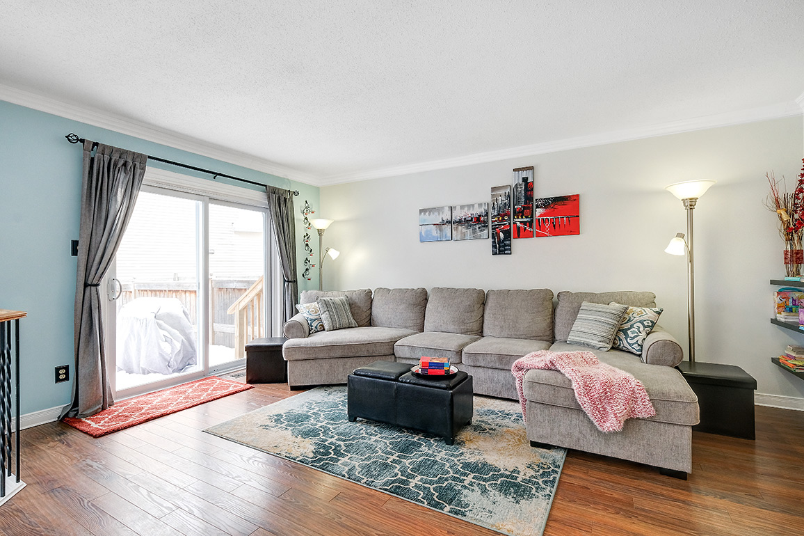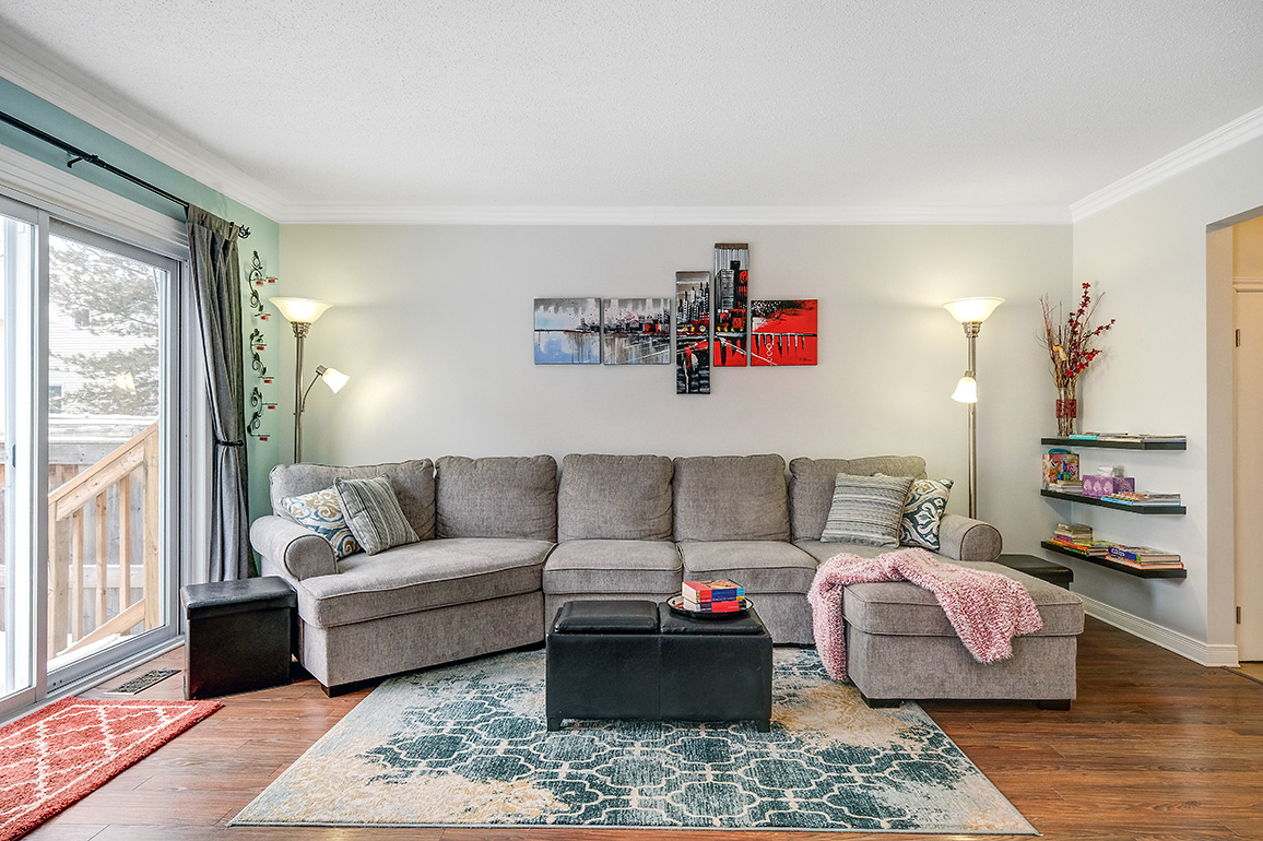 This Coscan Blue Spruce model is the largest townhouse (1831 sq ft as per builder's plan) in the family friendly community of Cardinal Place. Inside, you'll find 3 bedrooms with new carpeting and 2.5 bathrooms including a main floor powder room and a 4-piece ensuite off the master bedroom which also has a spacious walk-in closet. The remaining two bedrooms are a good size and share a full bathroom. The well laid-out kitchen has stainless steel appliances, lots of counterspace & cabinets with crown-moulding including a peninsula and a pantry wall. A wall of floor-to-ceiling windows bring in natural light to the main floor as well as the oversized rec room, both of which have resilient and durable laminate flooring. The owners have meticulously maintained the home since purchasing it, having replaced the windows in the kitchen and the two rear bedrooms, the roof shingles, the carpeting, air conditioner and deck between 2017 and 2019. The furnace and most of the remaining windows were replaced in 2009.