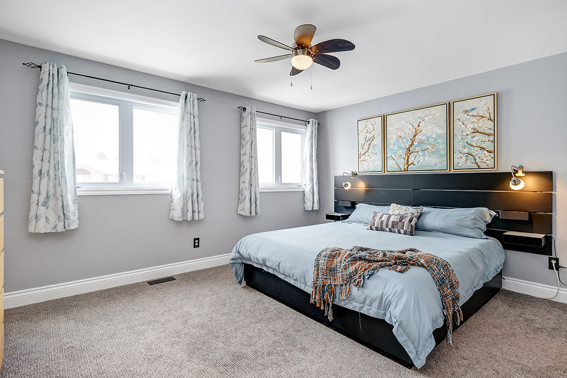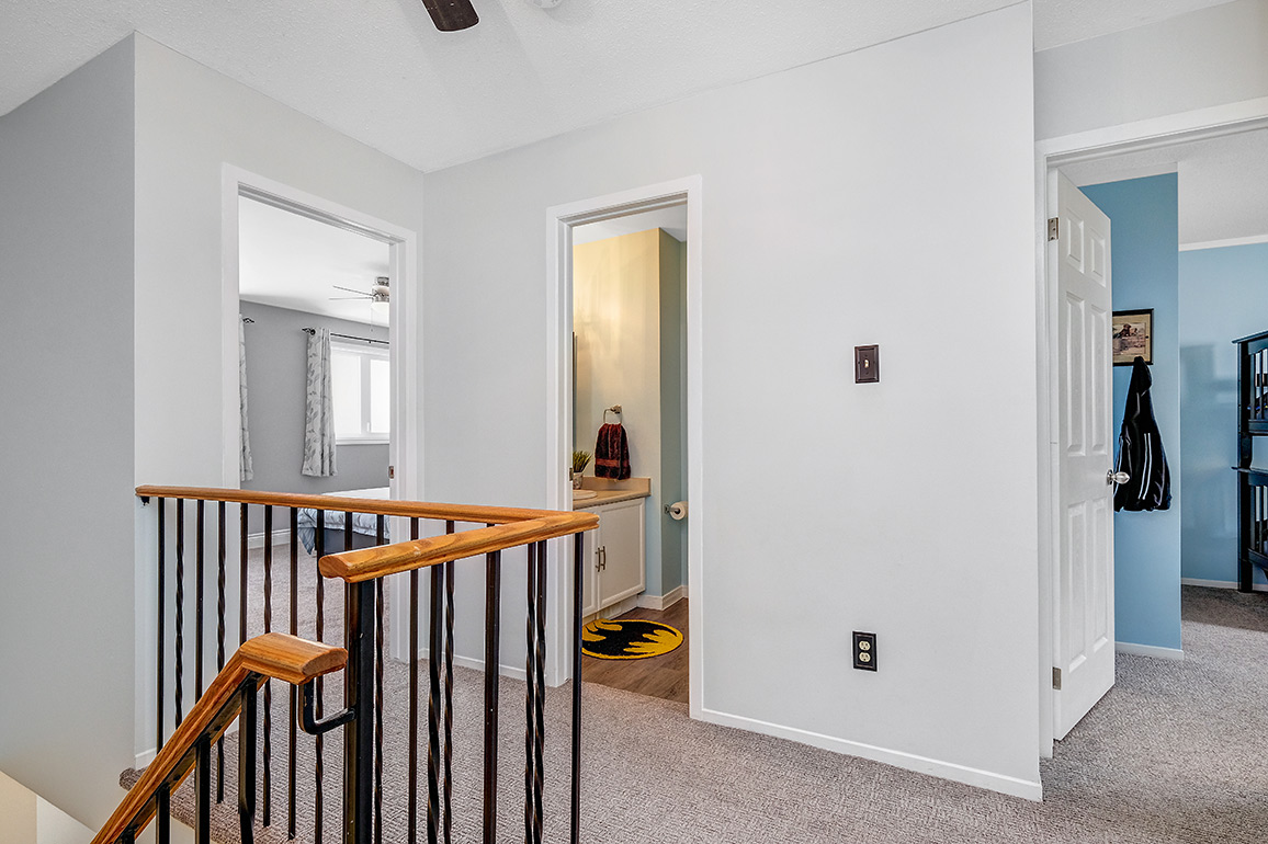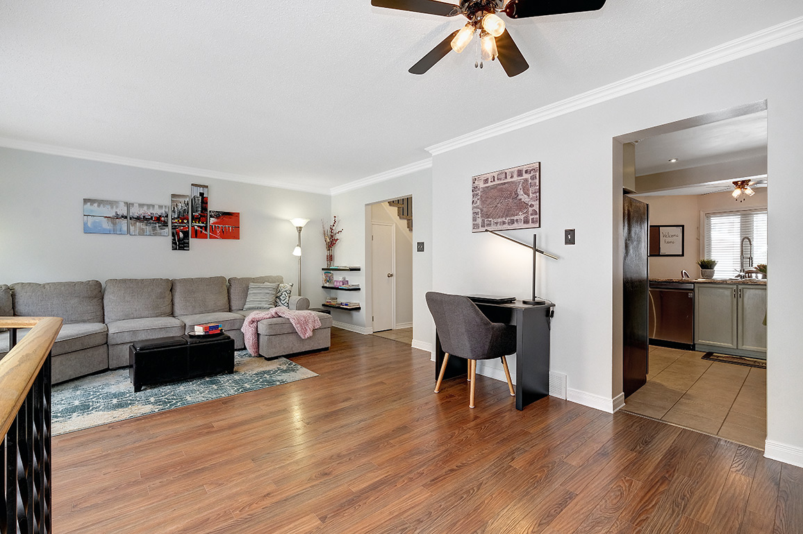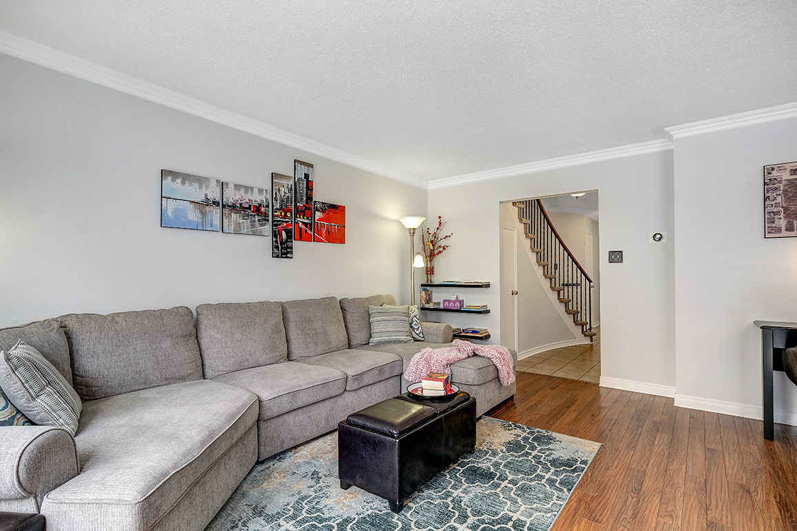 This Coscan Blue Spruce model is the largest townhouse (1831 sq ft as per builder's plan) in the family friendly community of Cardinal Place. Inside, you'll find 3 bedrooms with new carpeting and 2.5 bathrooms including a main floor powder room and a 4-piece ensuite off the master bedroom which also has a spacious walk-in closet. The remaining two bedrooms are a good size and share a full bathroom. The well laid-out kitchen has stainless steel appliances, lots of counterspace & cabinets with crown-moulding including a peninsula and a pantry wall. A wall of floor-to-ceiling windows bring in natural light to the main floor as well as the oversized rec room, both of which have resilient and durable laminate flooring. The owners have meticulously maintained the home since purchasing it, having replaced the windows in the kitchen and the two rear bedrooms, the roof shingles, the carpeting, air conditioner and deck between 2017 and 2019. The furnace and most of the remaining windows were replaced in 2009.