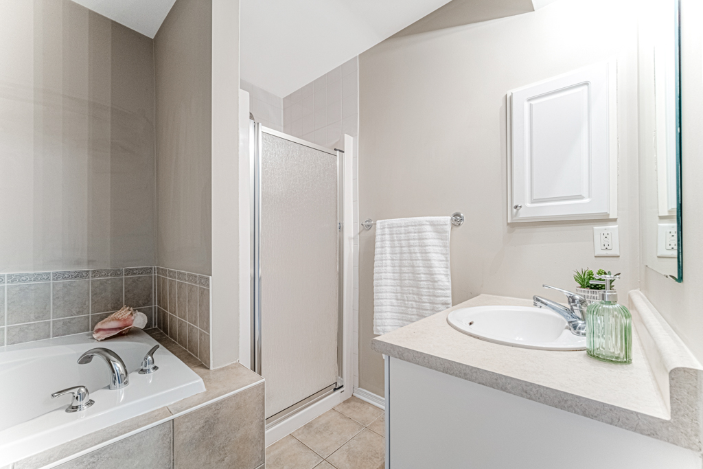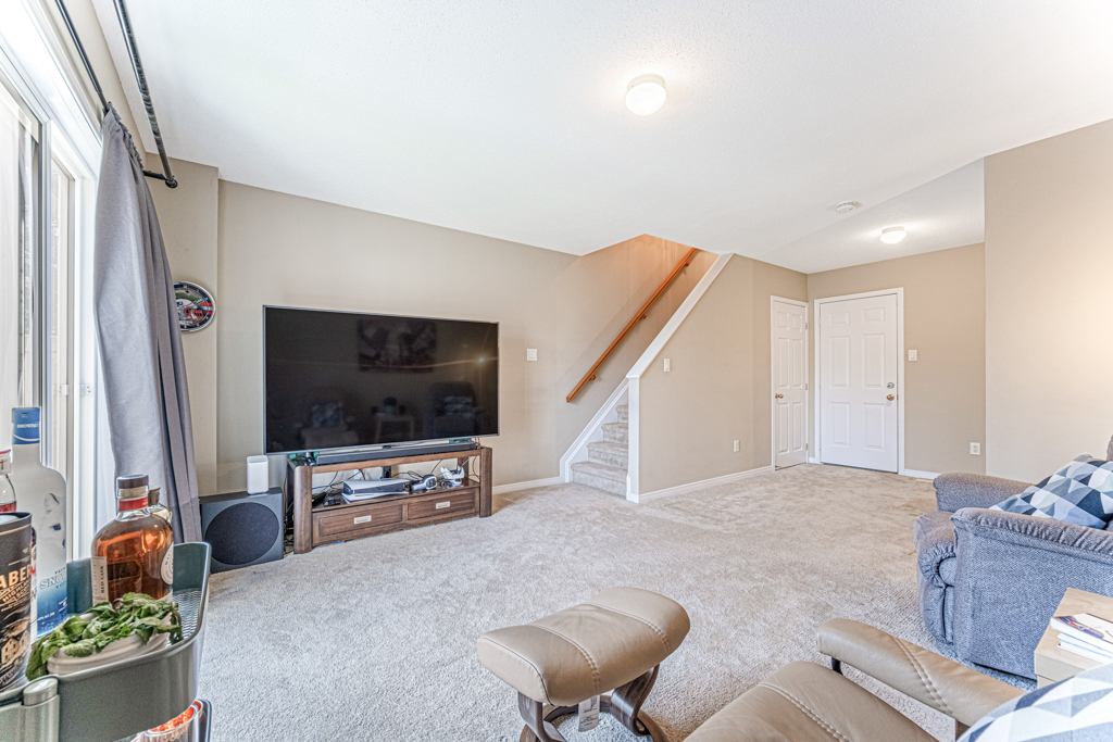 The living room boasts beautiful hardwood floors and a convenient 2-piece powder room. Upstairs, you'll find two spacious bedrooms with ample closet space, sharing a 4-piece bathroom that offers both a stand-up shower and a soaker tub. The lower level offers flexibility as a cozy flex space, perfect for a big screen TV, office or a home gym, with a walkout to the sunny backyard.