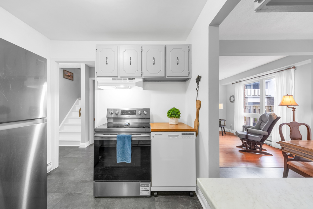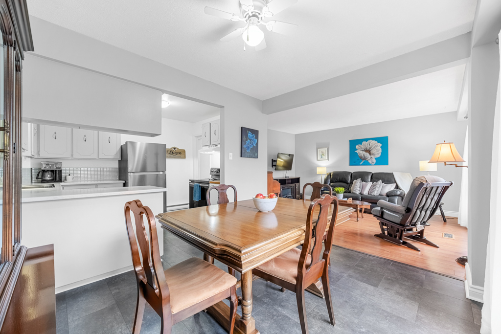 Perfect for first-time homebuyers & downsizers, this gem boasts a garage with inside entry. The main floor features a powder room, updated flooring, and large windows inviting ample natural light into the space, overlooking the partially fenced yard. The kitchen has lots of cabinets and counterspace. Upstairs surprises with spaciousness, offering 4 generously sized bedrooms with beautiful laminate flooring.