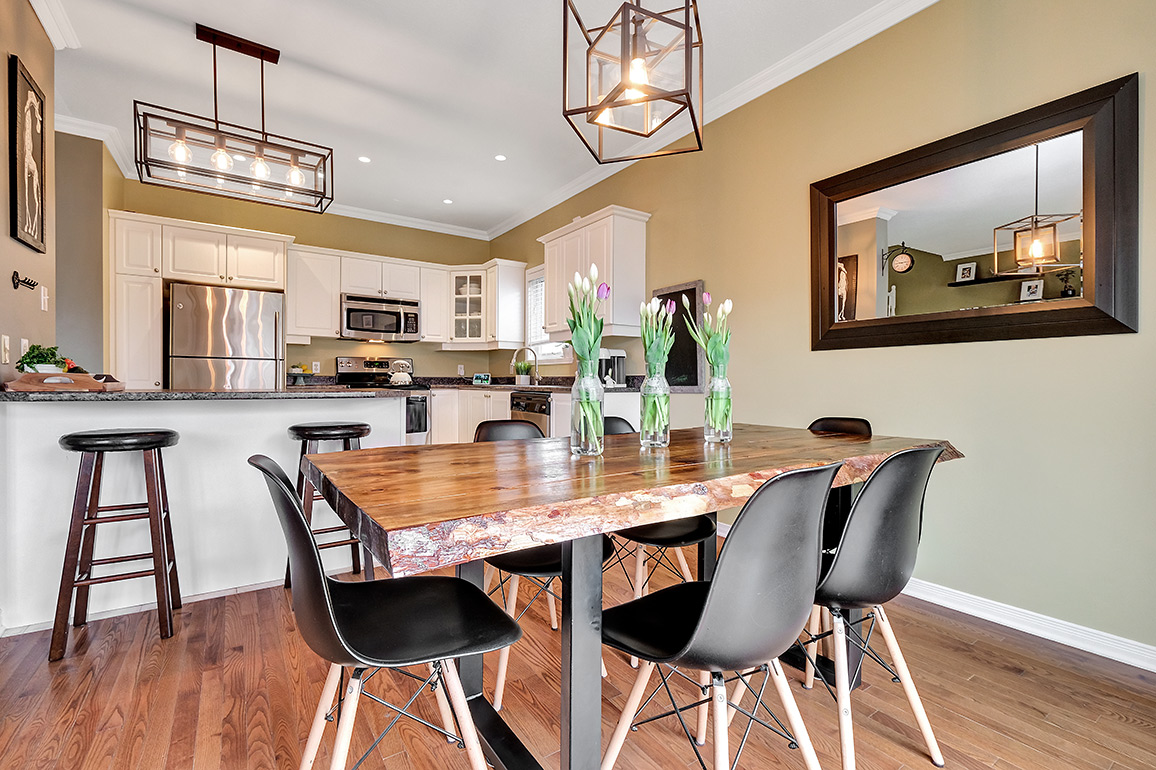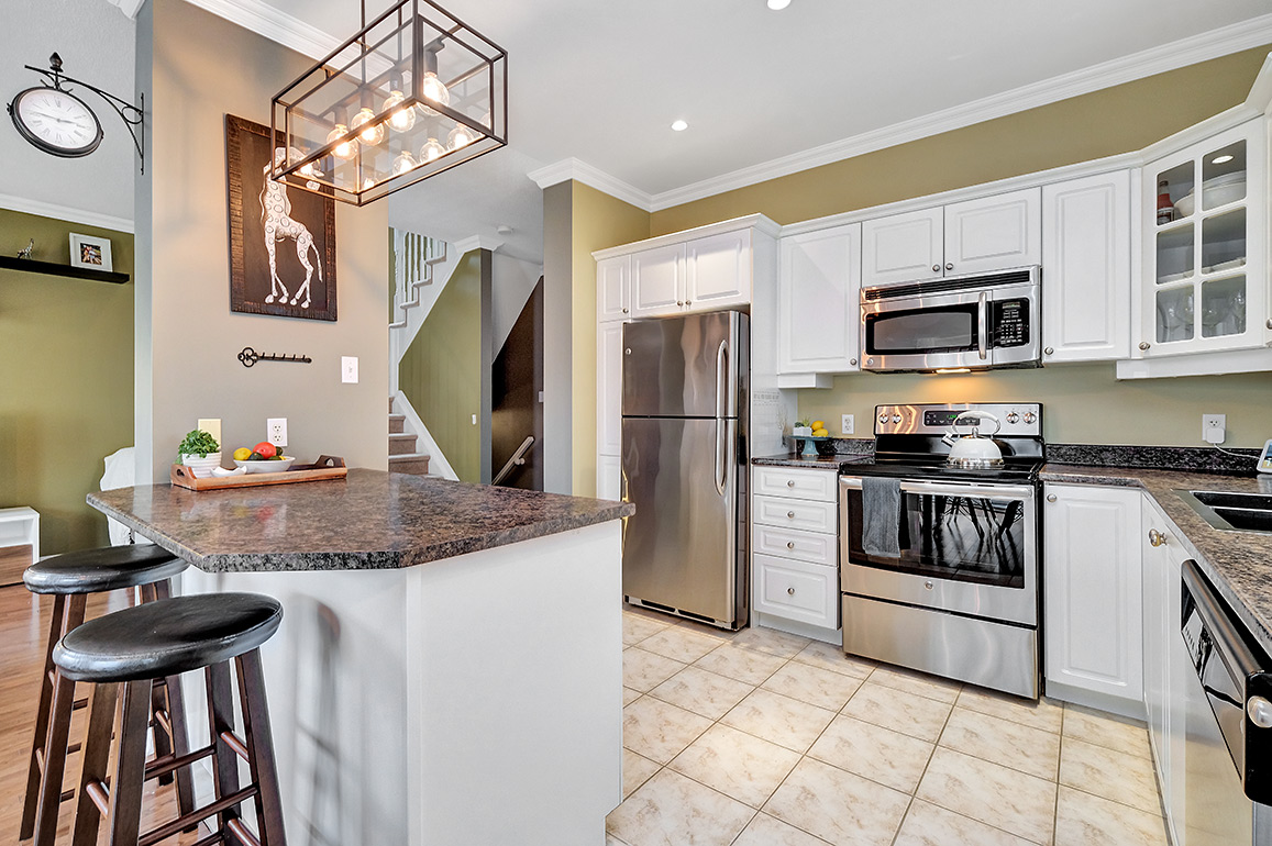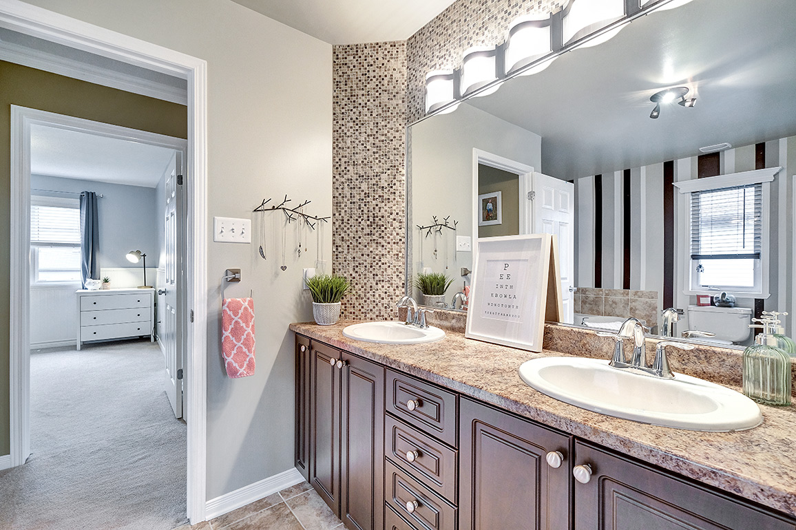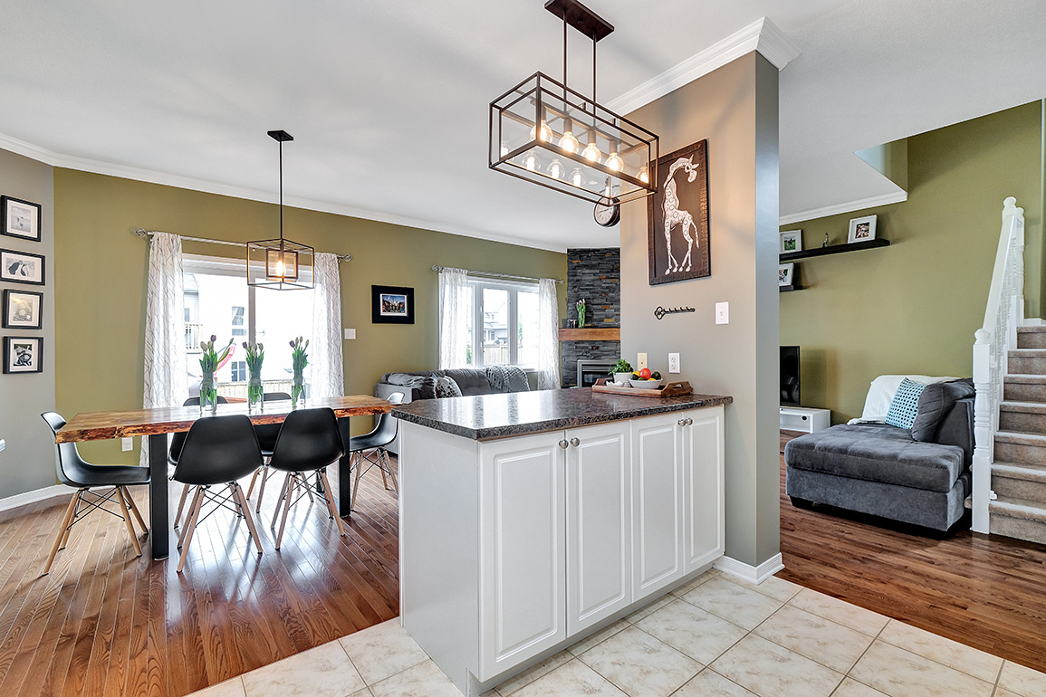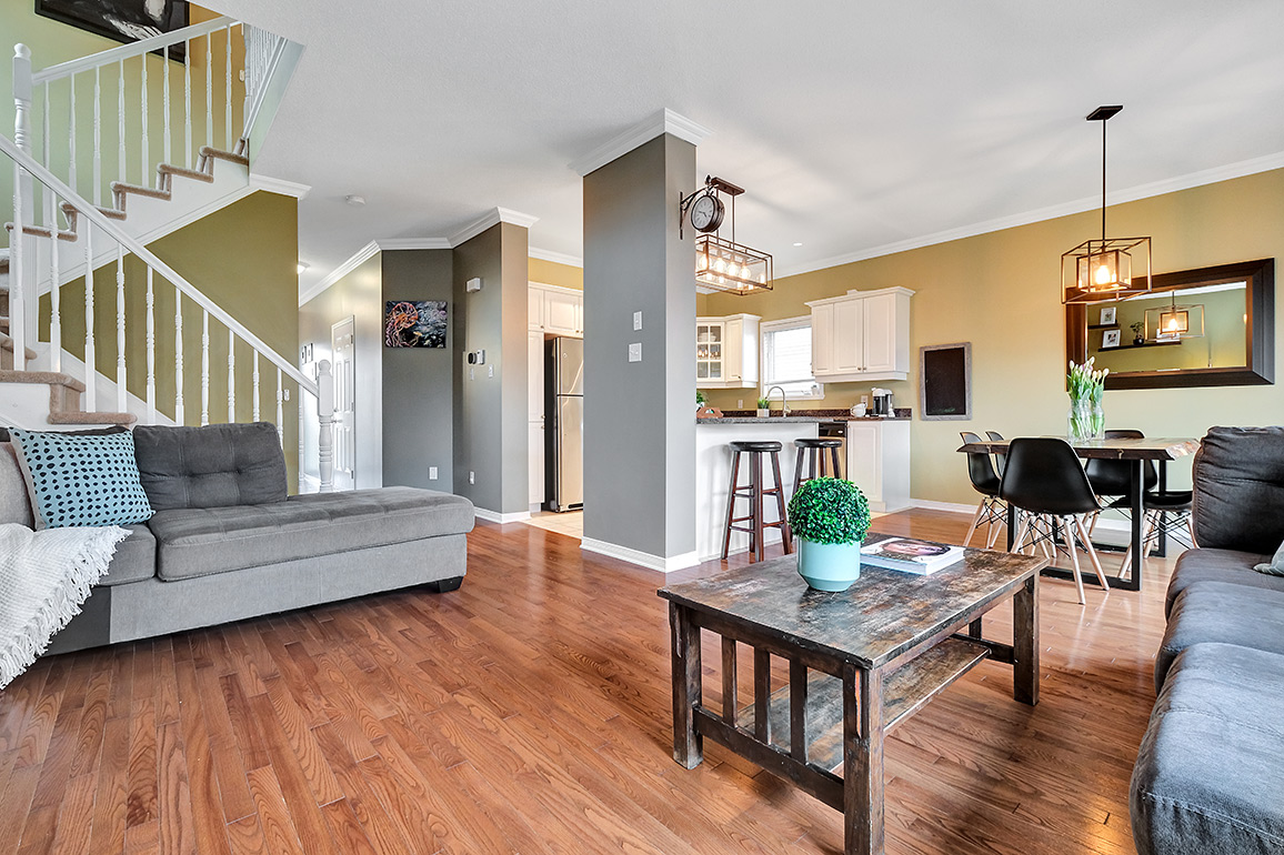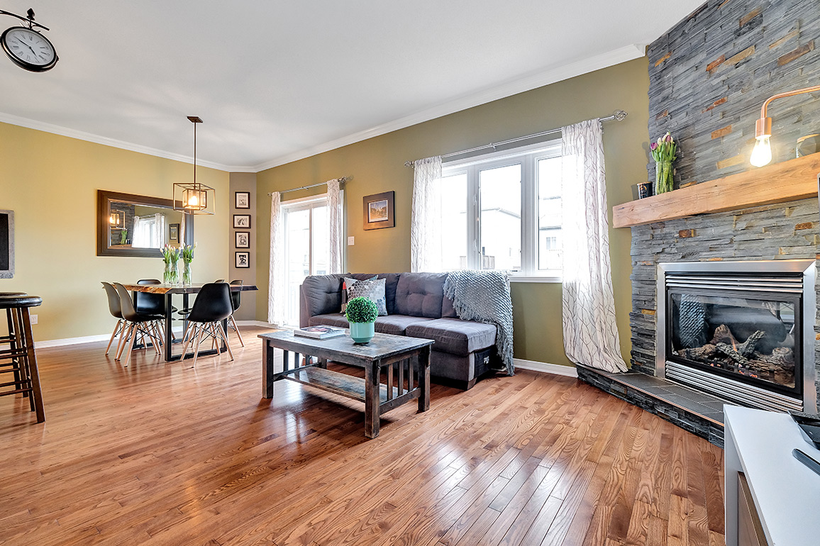 The main floor has a 2-piece bathroom & laundry room with new washer/dryer (2020). Hardwood & tile continue into the open-concept kitchen/dining room & into the living room with a gas fireplace set onto a stone wall with wood mantle. Upstairs, the primary bedroom is bright & spacious & offers a large walk-in closet with built-ins. It shares the 5-piece bathroom with double-vanity, stand-up shower & large soaker tub.