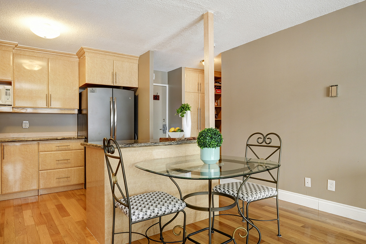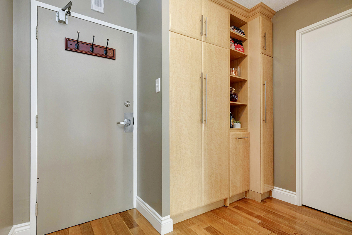 The recently renovated kitchen offers loads of cupboards & counterspace including a large island, granite countertops and crown moulding. The hardwood floors warm the space and flow nicely from room to room. The full bath has been updated with a new vanity and ceramic tile. The foyer and bedroom have wall-to-wall cabinets to help increase your storage capacity.