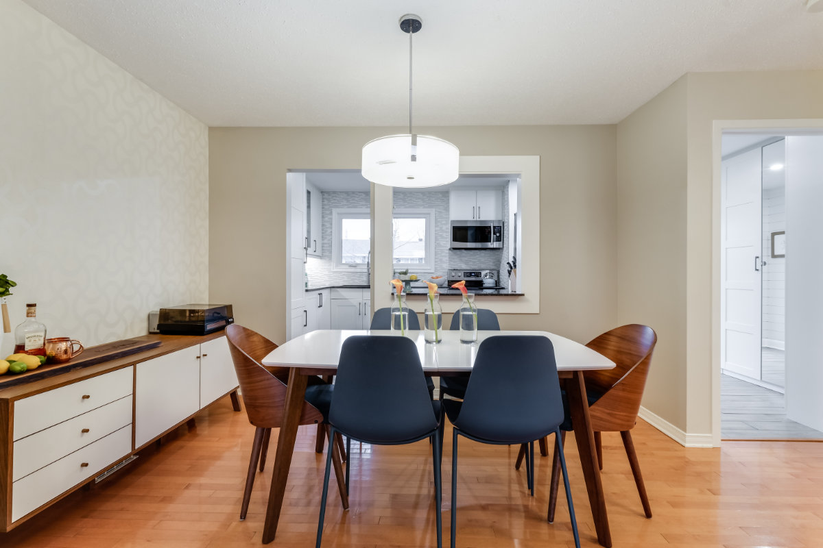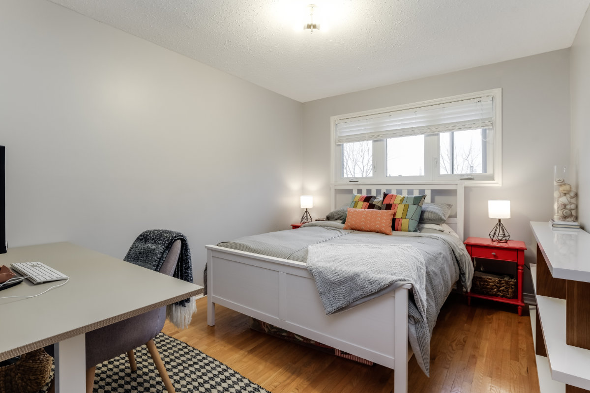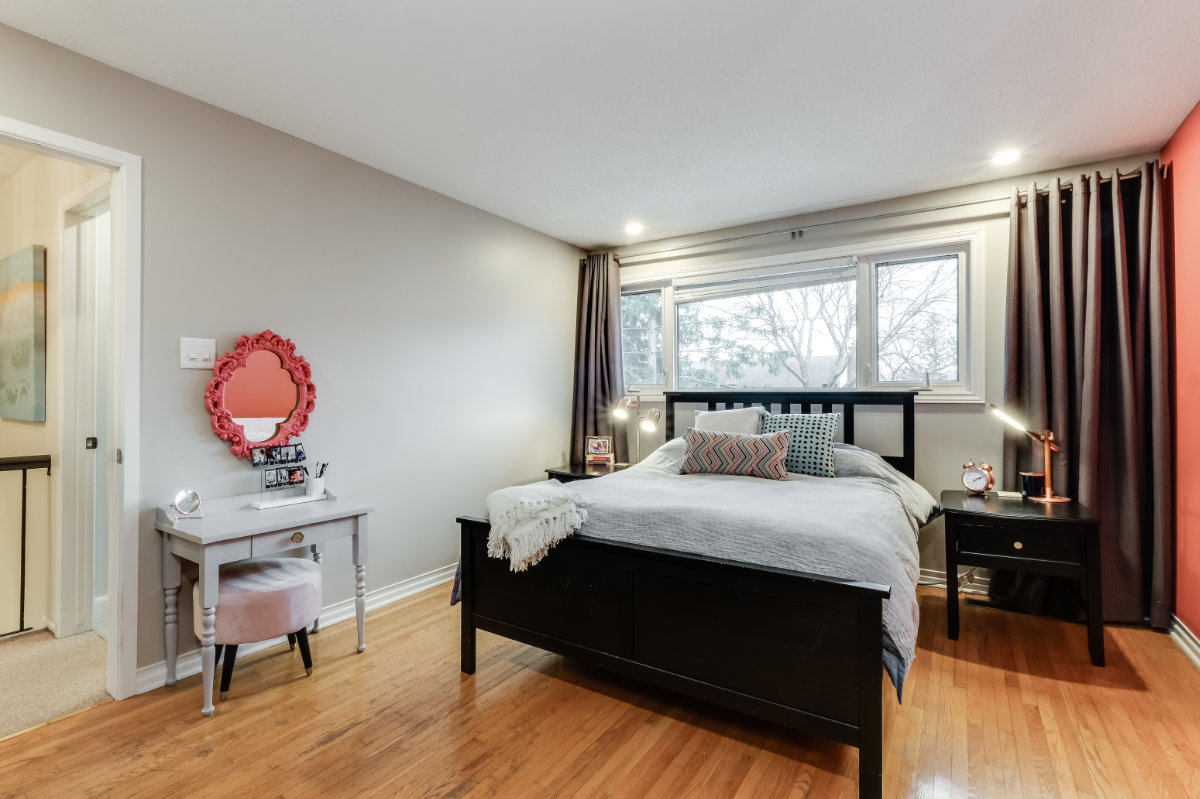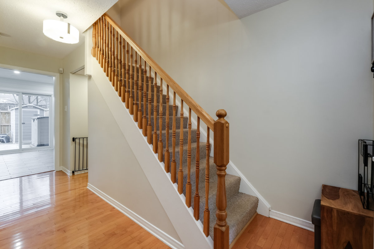 The three bedrooms all have hardwood flooring & are all generous in size, with the principle bedroom even having a walk-in closet. The main bathroom was recently updated with a new soaker tub, tub surround, a stylish vanity, storage cabinet & tile. The expanded basement has a powder room, laminate flooring, lots of pot lights and a beverage centre. Laundry and plenty of added storage finish off the basement. The fenced-in backyard has an expansive wood deck & storage shed.