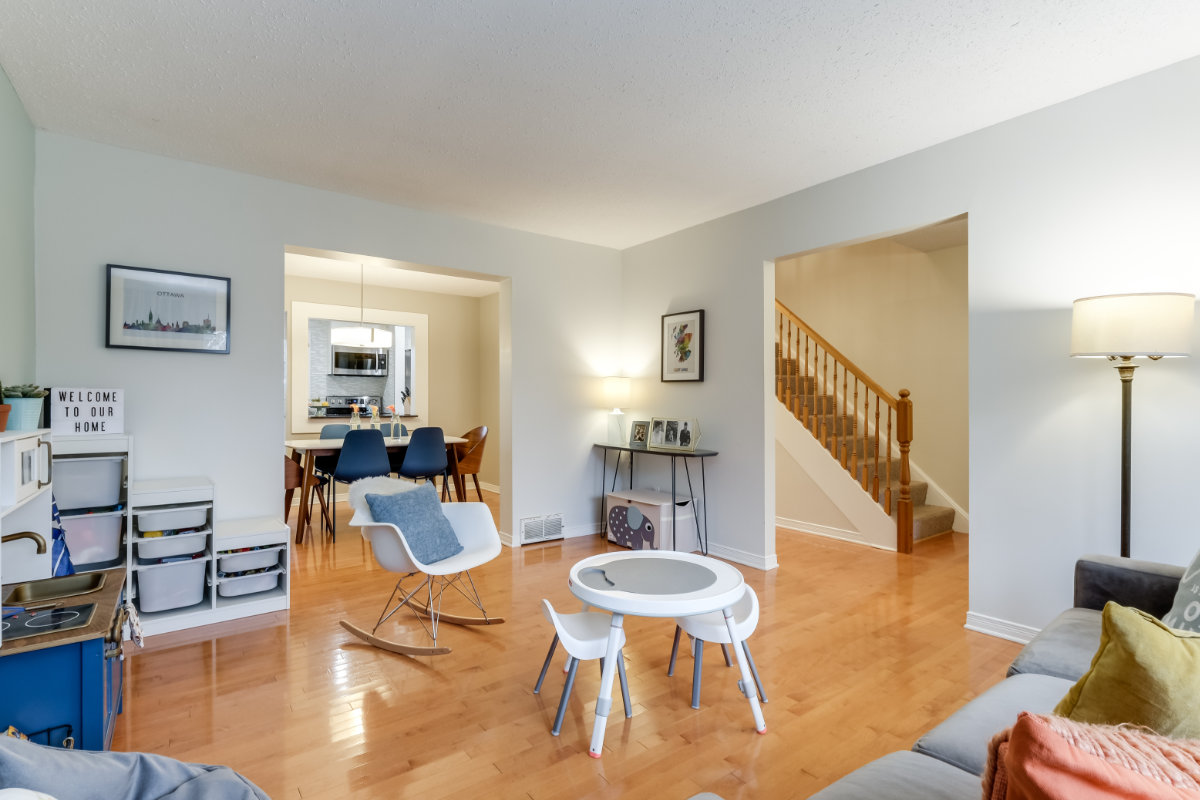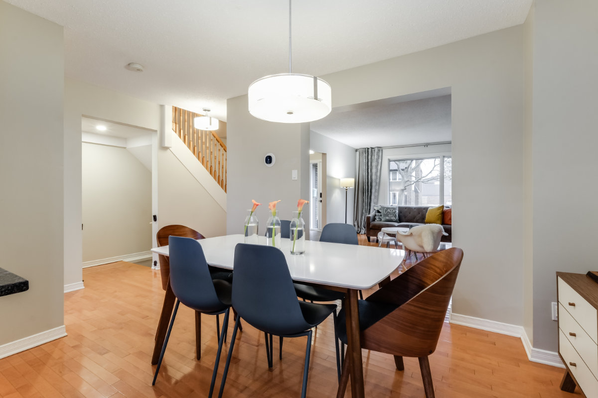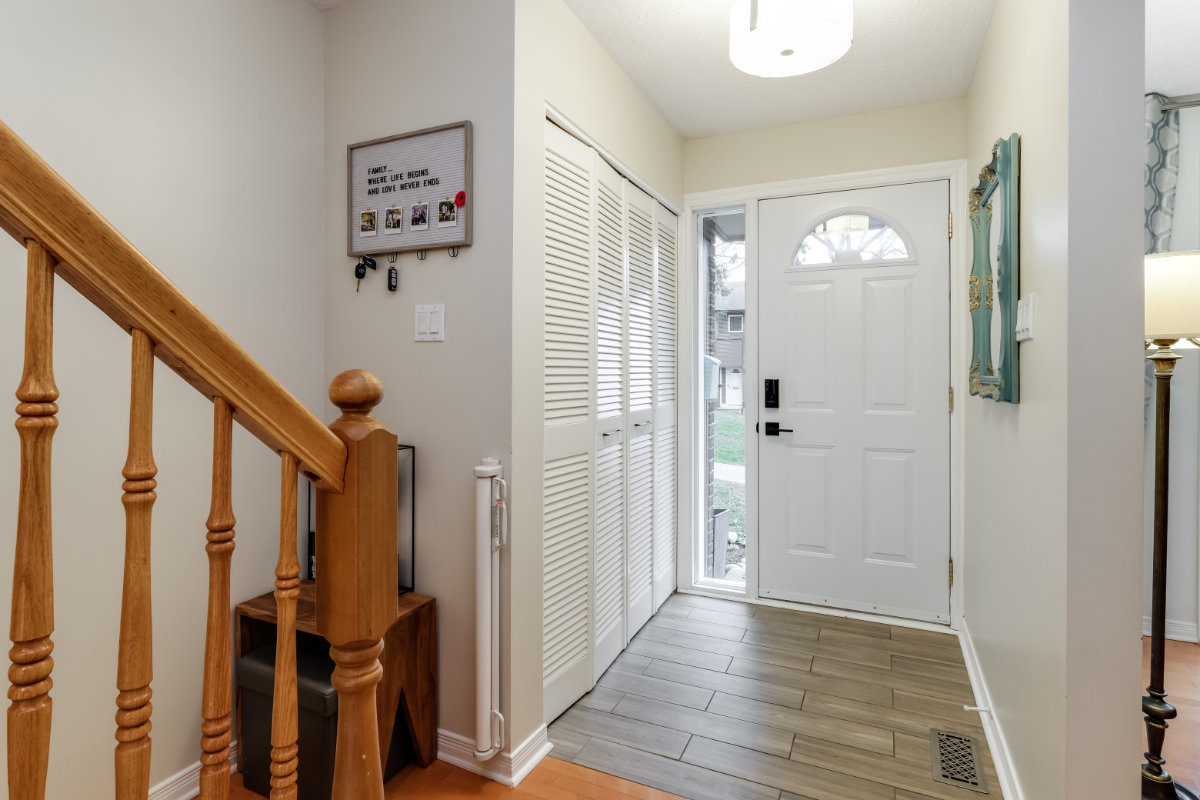 The condo offers carefree living with snow removal and lawncare included, an outdoor heated saltwater pool, beautiful mature trees and a wonderful sense of community. The spacious open-concept main floor has been tastefully updated with hardwood flooring, white shaker-style cabinets, granite countertops, stainless steel appliances & bonus storage space.