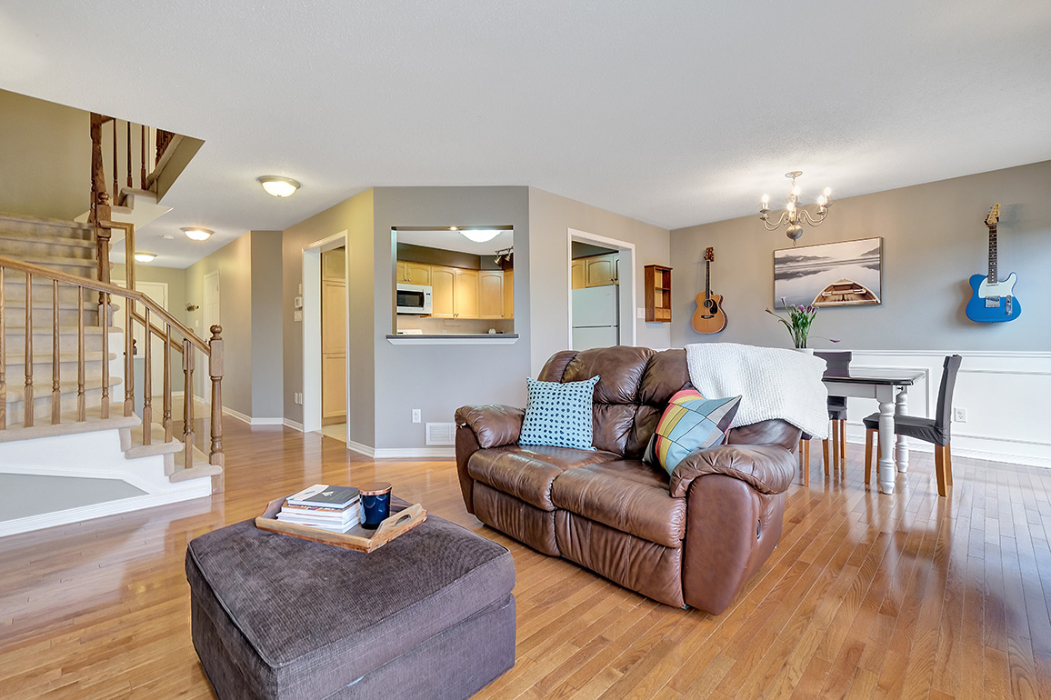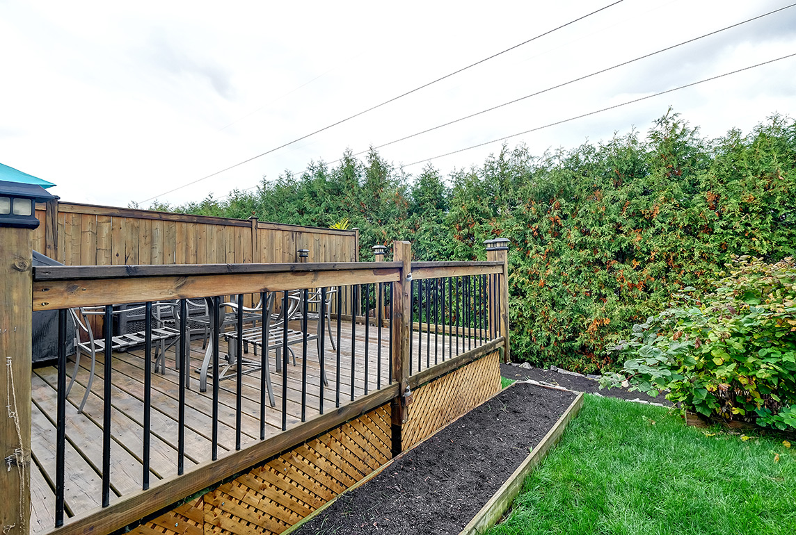The basement is nicely laid out with a large rec room and lots of storage in the utility and storage rooms. Outside, the fully fenced yard has tall hedges at the rear and a large deck perfect for those family gatherings. This is a really bright, spacious and well laid out townhome with no rear neighbours.