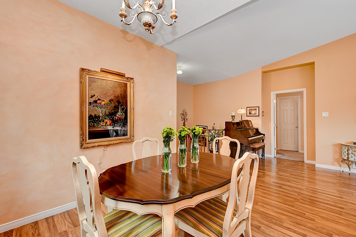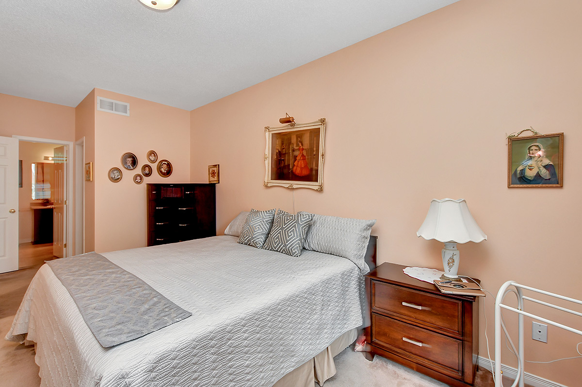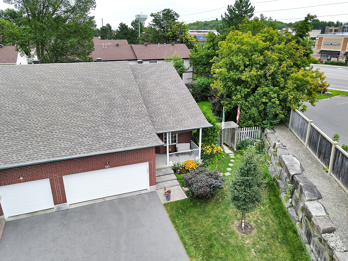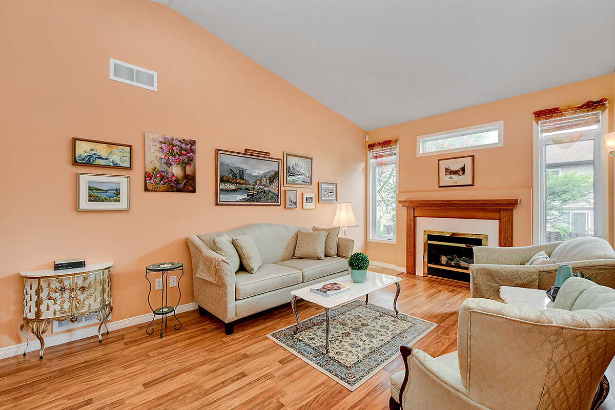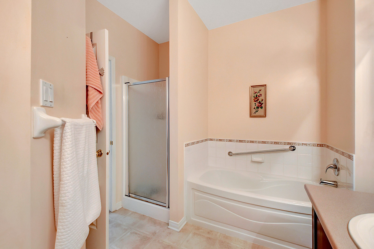 As you walk into the home, you’ll love the cathedral ceilings & natural light. The spacious living room has a natural gas fireplace flanked by two large windows and opens into the kitchen with wood cabinets, plenty of cupboard space and a patio door leading to the deck. The primary bedroom is large and offers a walk-in closet and ensuite with a shower, soaker tub and long vanity. The main floor continues with a 2nd full bathroom, another bedroom currently used as a TV room with a murphy bed, access to the garage and main floor laundry.