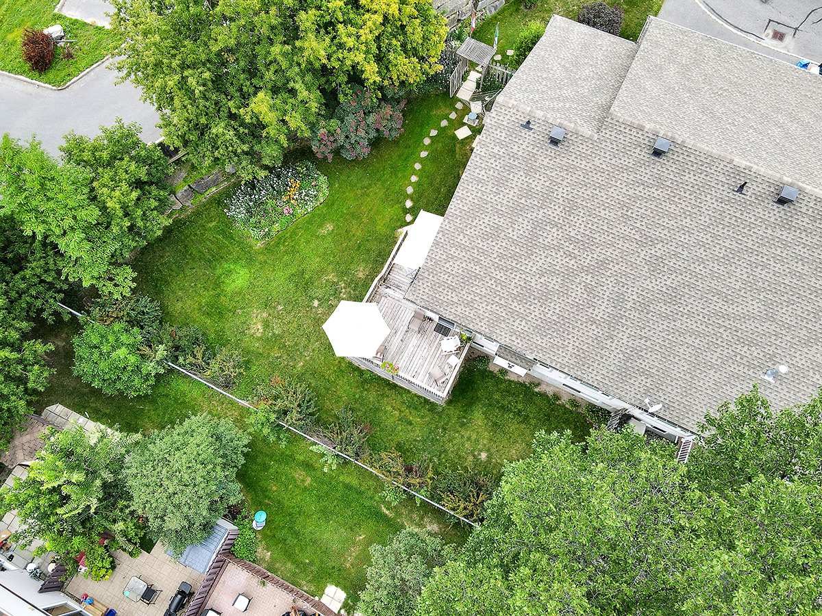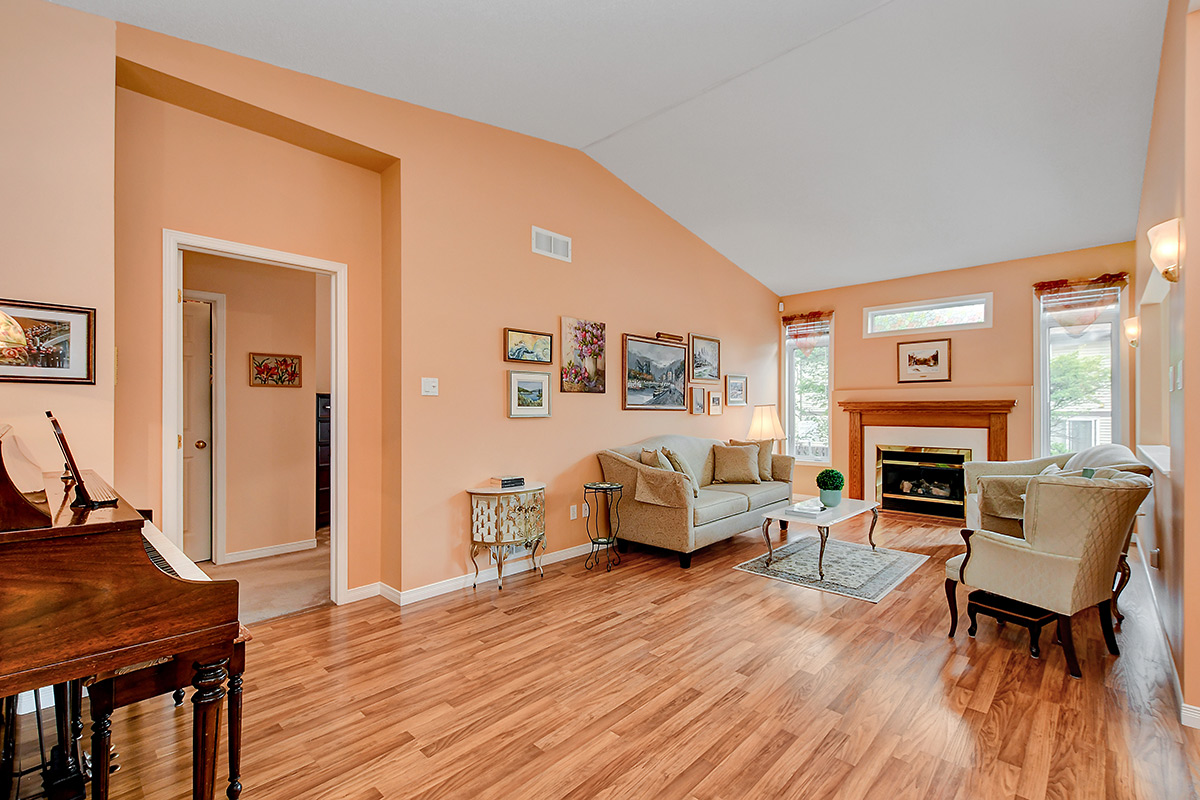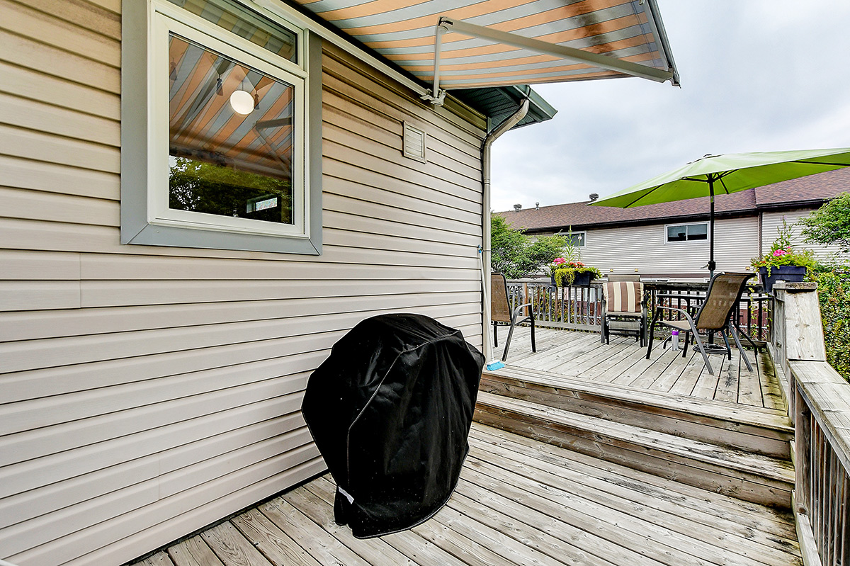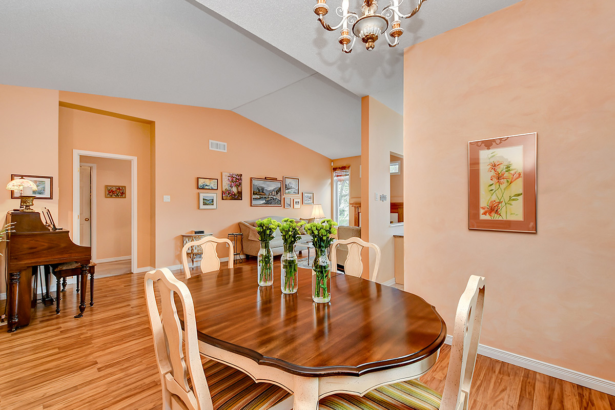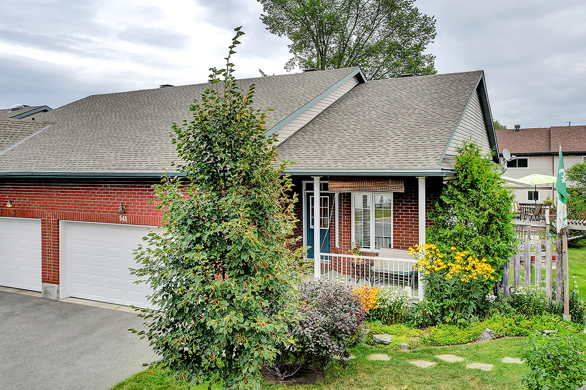 As you walk into the home, you’ll love the cathedral ceilings & natural light. The spacious living room has a natural gas fireplace flanked by two large windows and opens into the kitchen with wood cabinets, plenty of cupboard space and a patio door leading to the deck. The primary bedroom is large and offers a walk-in closet and ensuite with a shower, soaker tub and long vanity. The main floor continues with a 2nd full bathroom, another bedroom currently used as a TV room with a murphy bed, access to the garage and main floor laundry.