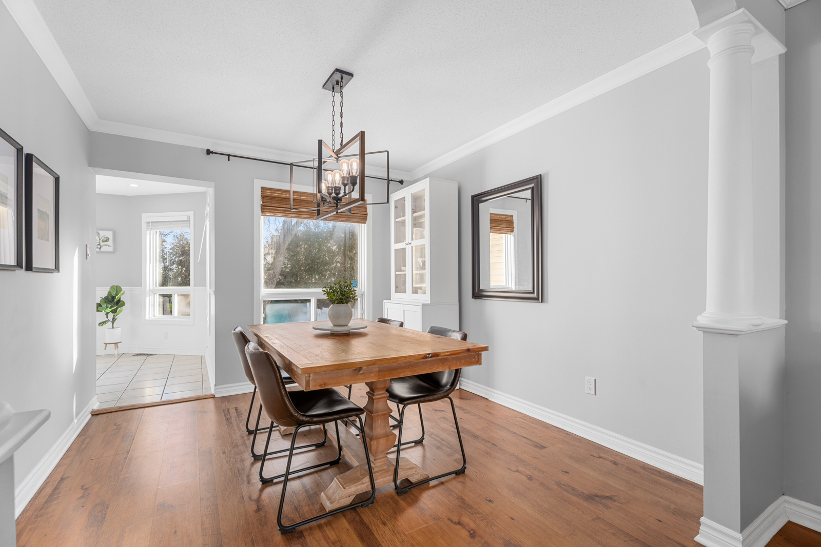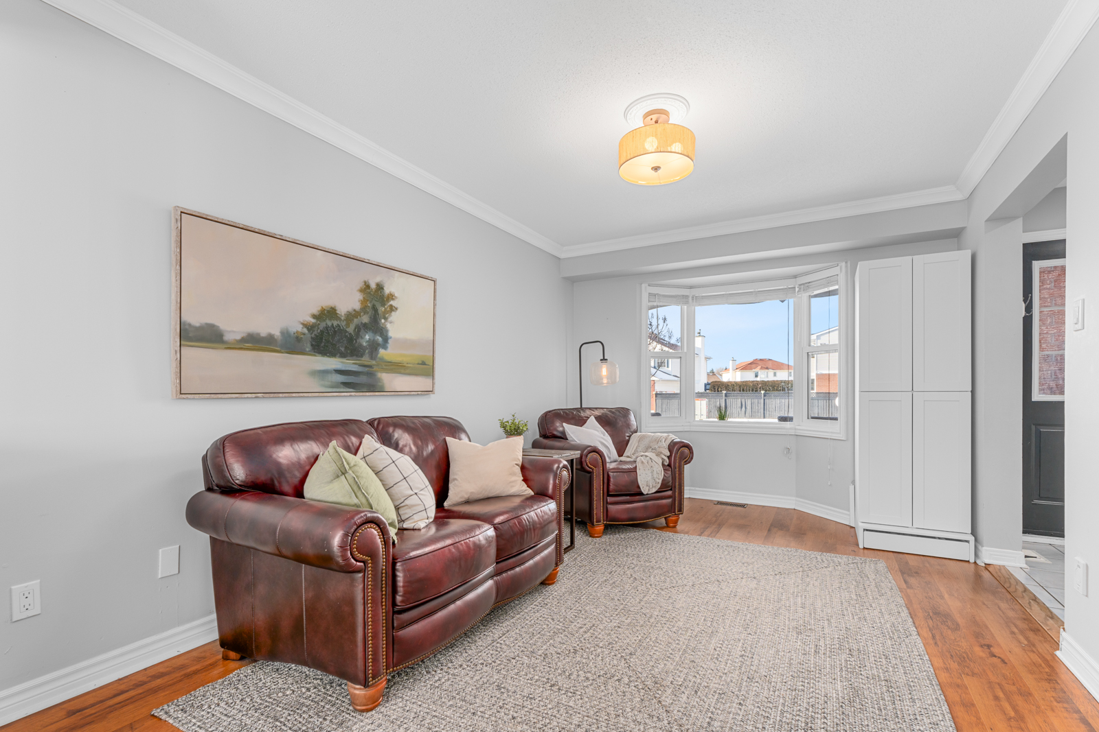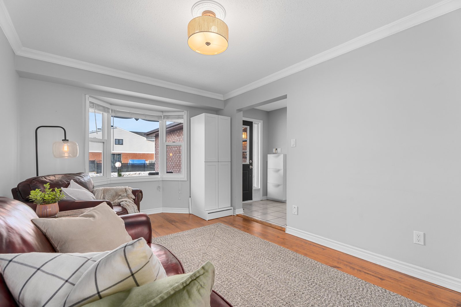 The main floor boasts a functional and inviting layout. A sunny eat-in kitchen with ample cupboard space opens onto a private backyard featuring a spacious deck with no rear neighbours. The family room, complete with a wood-burning fireplace, is perfect for cozy evenings, while the separate dining room and living room provide versatile space for hosting and everyday living. The charming front porch enhances curb appeal and offers a delightful spot to enjoy your morning coffee. Upstairs, the primary bedroom comes complete with a large ensuite featuring a soaker tub, stand-alone shower, and double-sink vanity. The two additional bedrooms share a fully renovated main bathroom, offering both functionality and style.