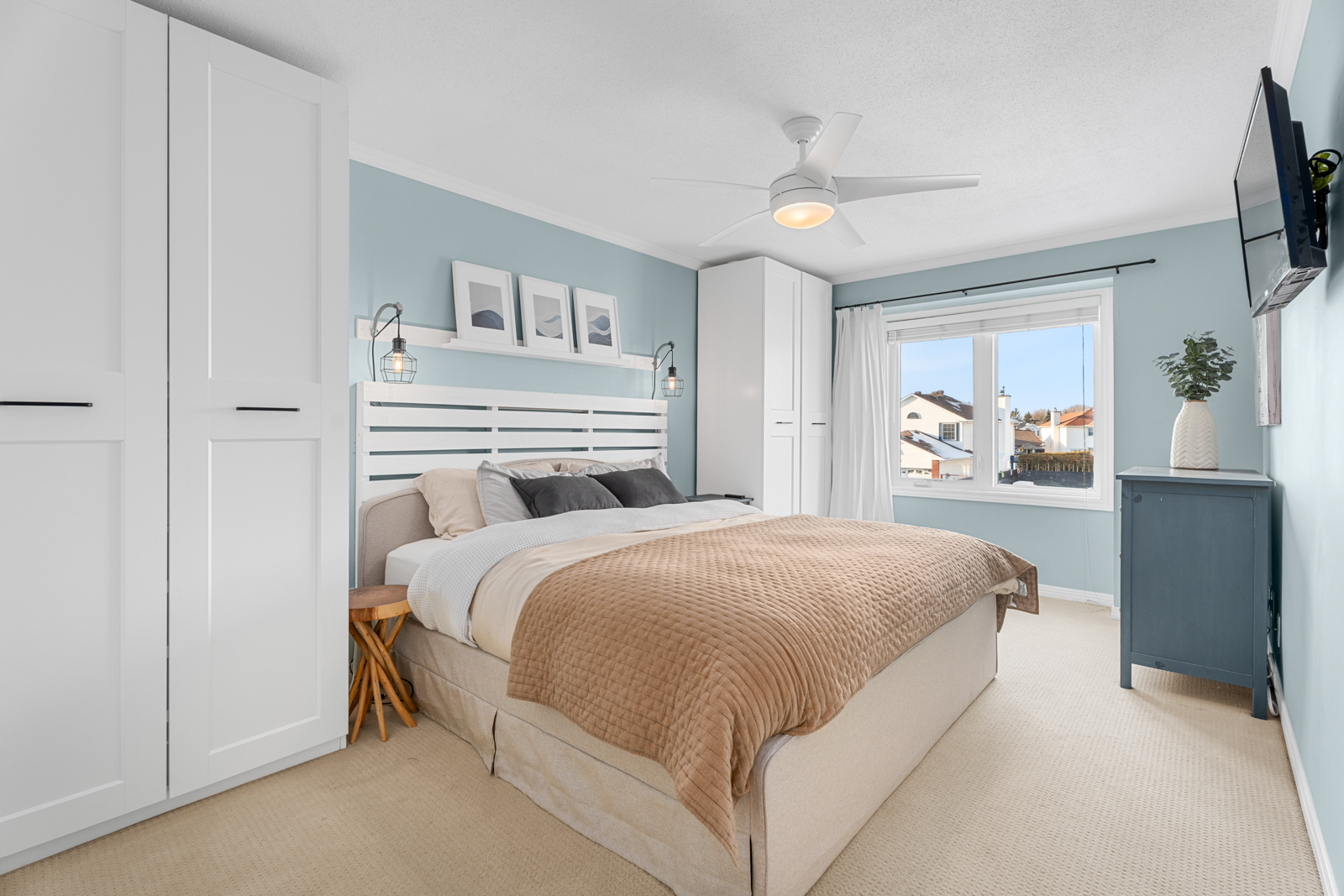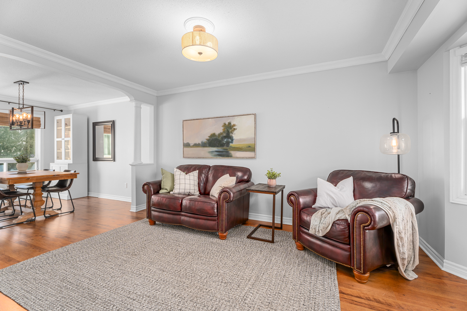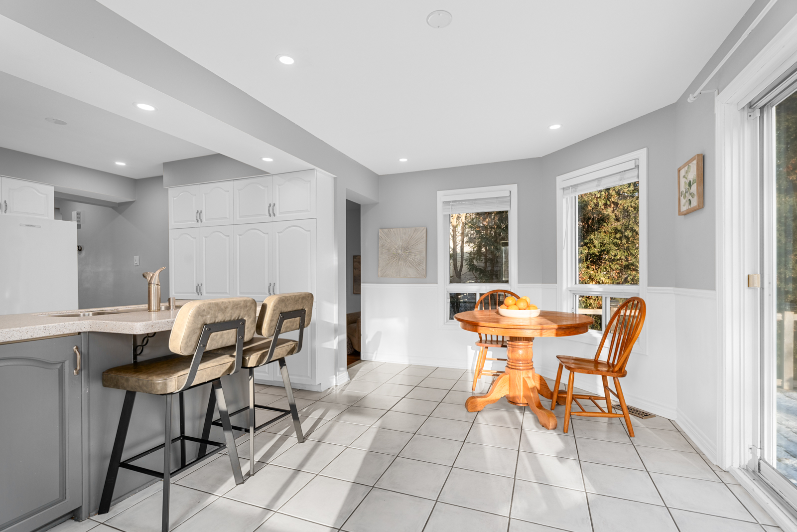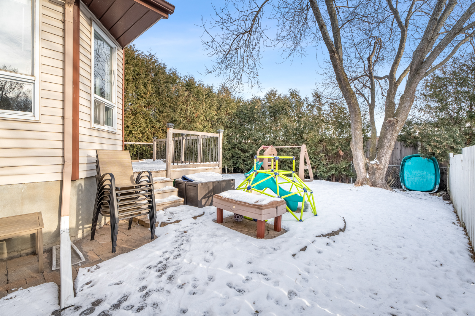 The main floor boasts a functional and inviting layout. A sunny eat-in kitchen with ample cupboard space opens onto a private backyard featuring a spacious deck with no rear neighbours. The family room, complete with a wood-burning fireplace, is perfect for cozy evenings, while the separate dining room and living room provide versatile space for hosting and everyday living. The charming front porch enhances curb appeal and offers a delightful spot to enjoy your morning coffee. Upstairs, the primary bedroom comes complete with a large ensuite featuring a soaker tub, stand-alone shower, and double-sink vanity. The two additional bedrooms share a fully renovated main bathroom, offering both functionality and style.
