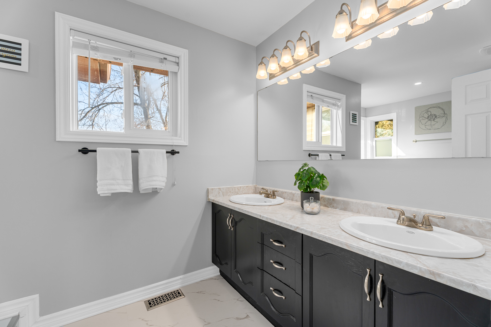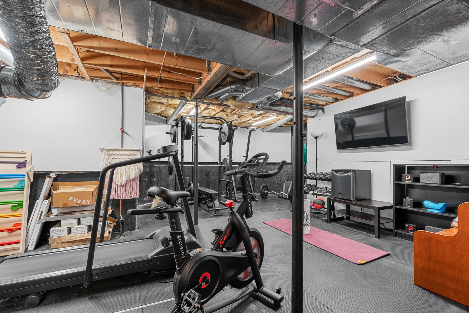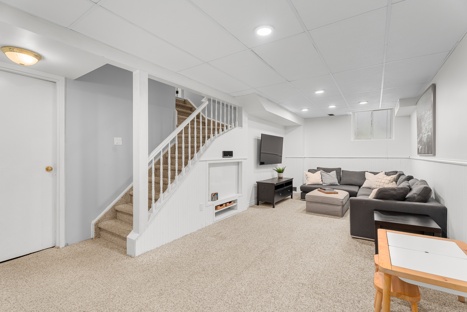 The finished basement provides even more space, with a large recreation room and a bonus workout area to meet a variety of family needs. Modern smart technology throughout the home provides enhanced convenience and peace of mind. Recent updates include a new air conditioner, a fully renovated bathroom (2023), roof shingles (2021); dishwasher (2020), an over-the-range microwave (2020) and a garage door (2020). With its thoughtful layout, numerous updates, and unbeatable location near parks, shopping, and dining, this home delivers the perfect combination of comfort and convenience.