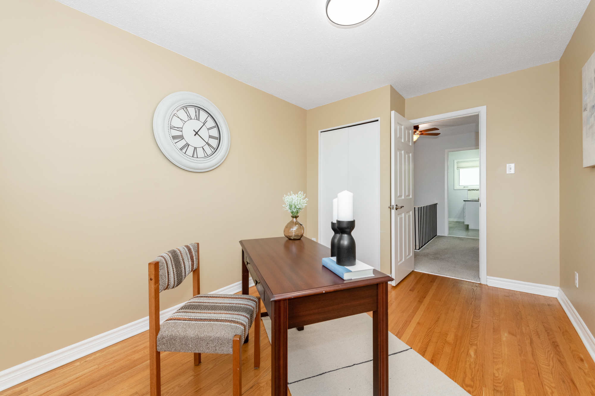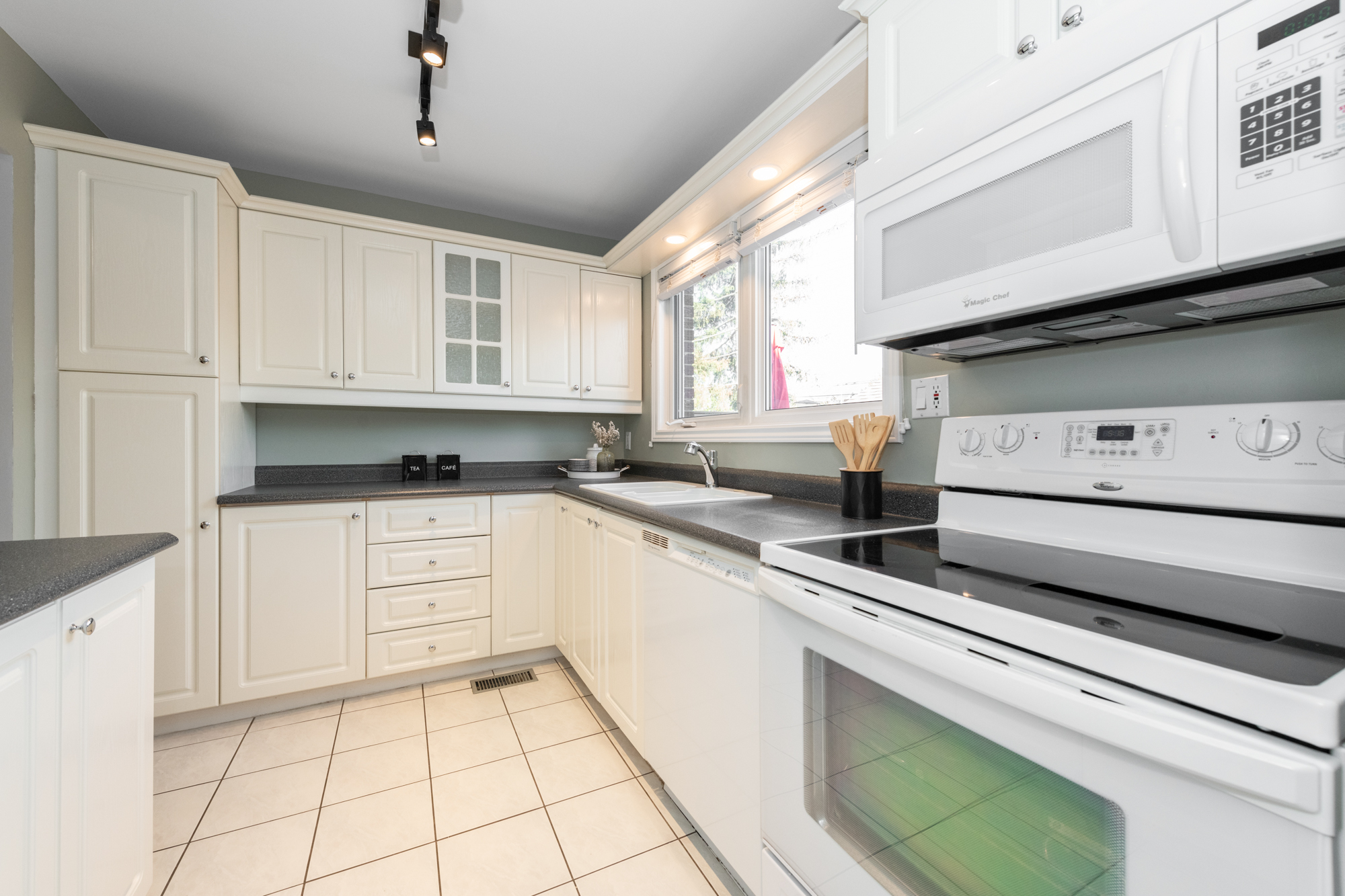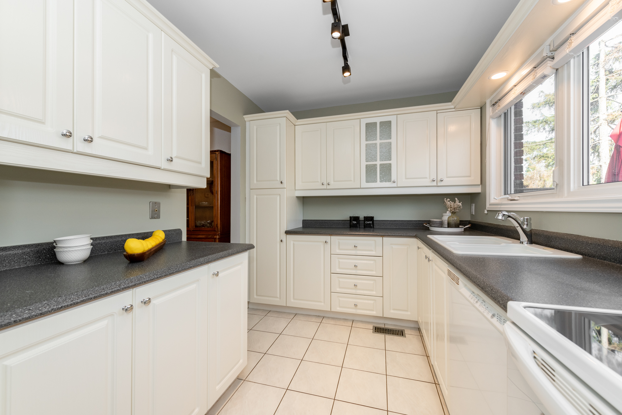 It offers a south-facing rear yard w/ no rear neighbours & a newer fence. The home is flooded w/ natural light, has hardwood throughout & has been lovingly maintained & updated. It offers a spacious living room w/ a large window looking out onto many mature trees. The updated kitchen has a fantastic layout with lots of cupboards & counters and an eating area.
