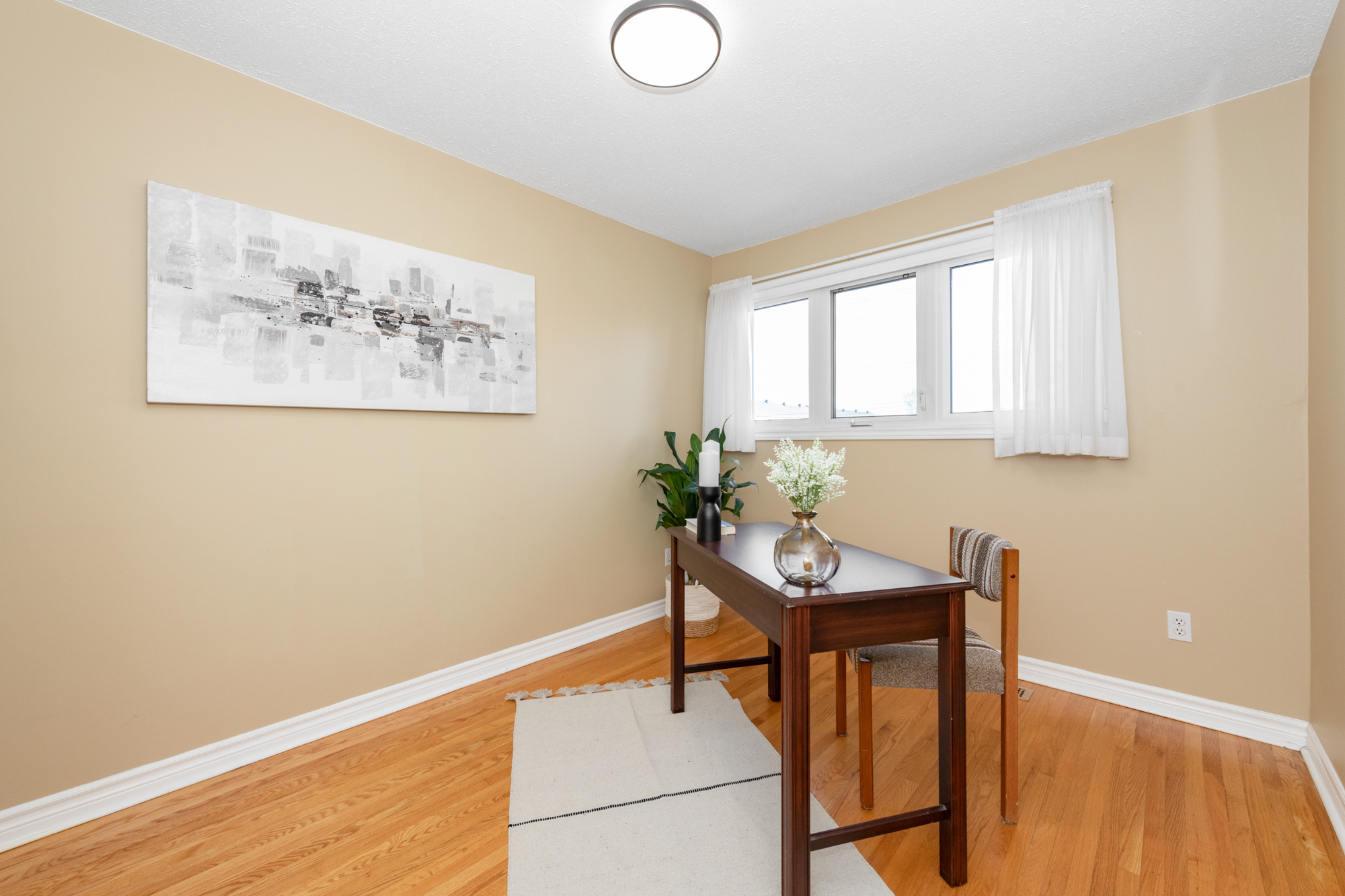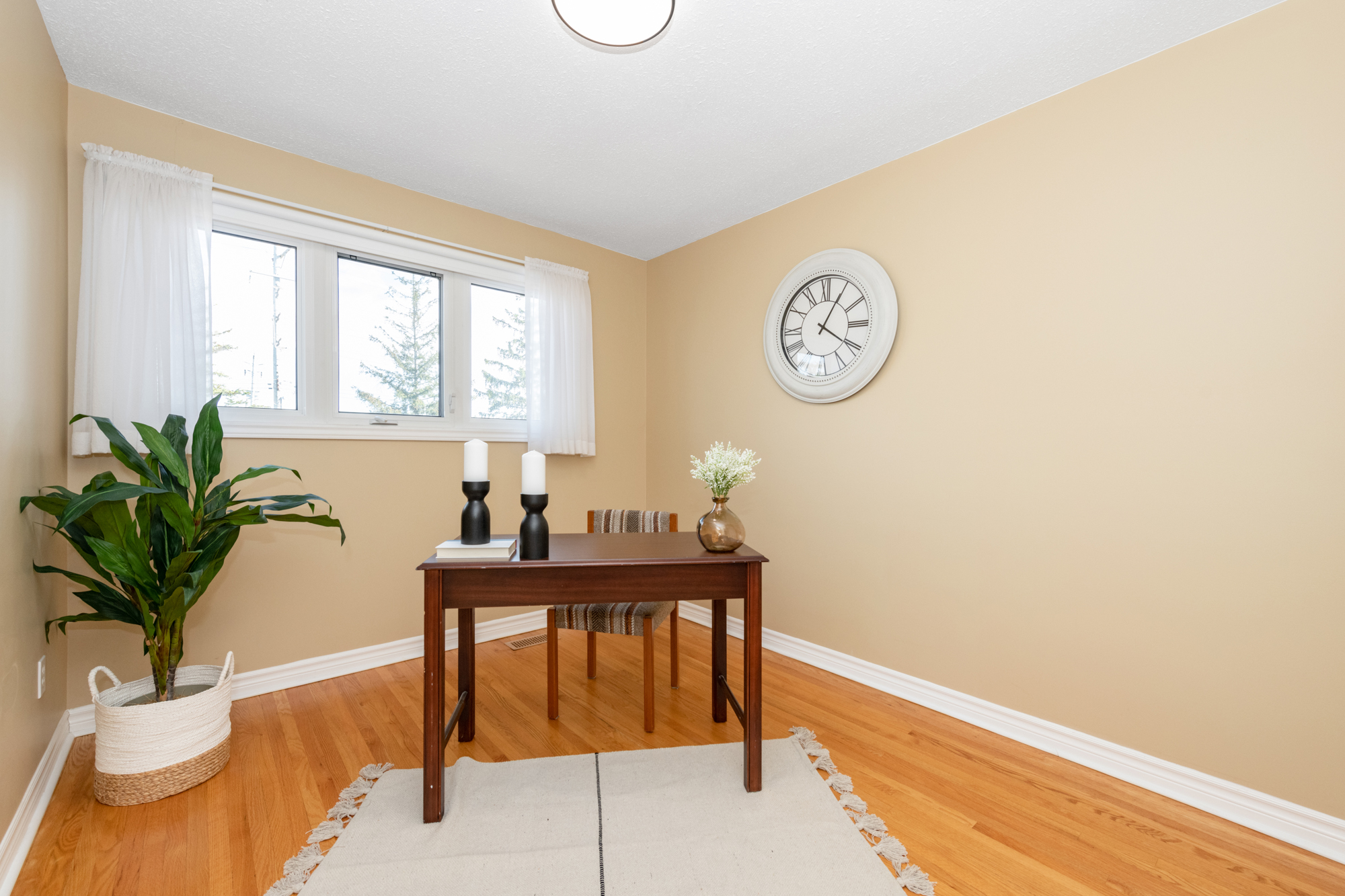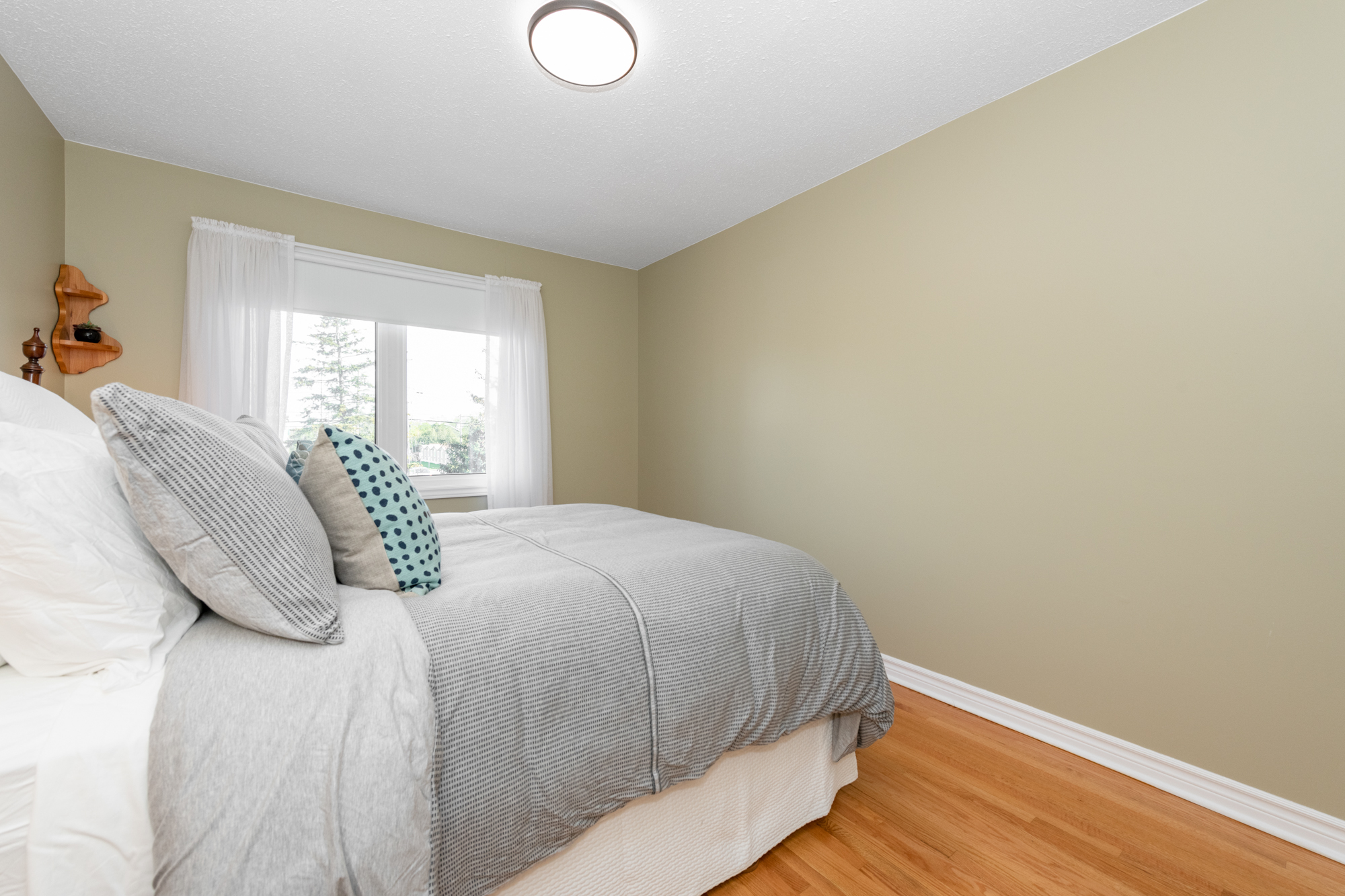 It offers a south-facing rear yard w/ no rear neighbours & a newer fence. The home is flooded w/ natural light, has hardwood throughout & has been lovingly maintained & updated. It offers a spacious living room w/ a large window looking out onto many mature trees. The updated kitchen has a fantastic layout with lots of cupboards & counters and an eating area.