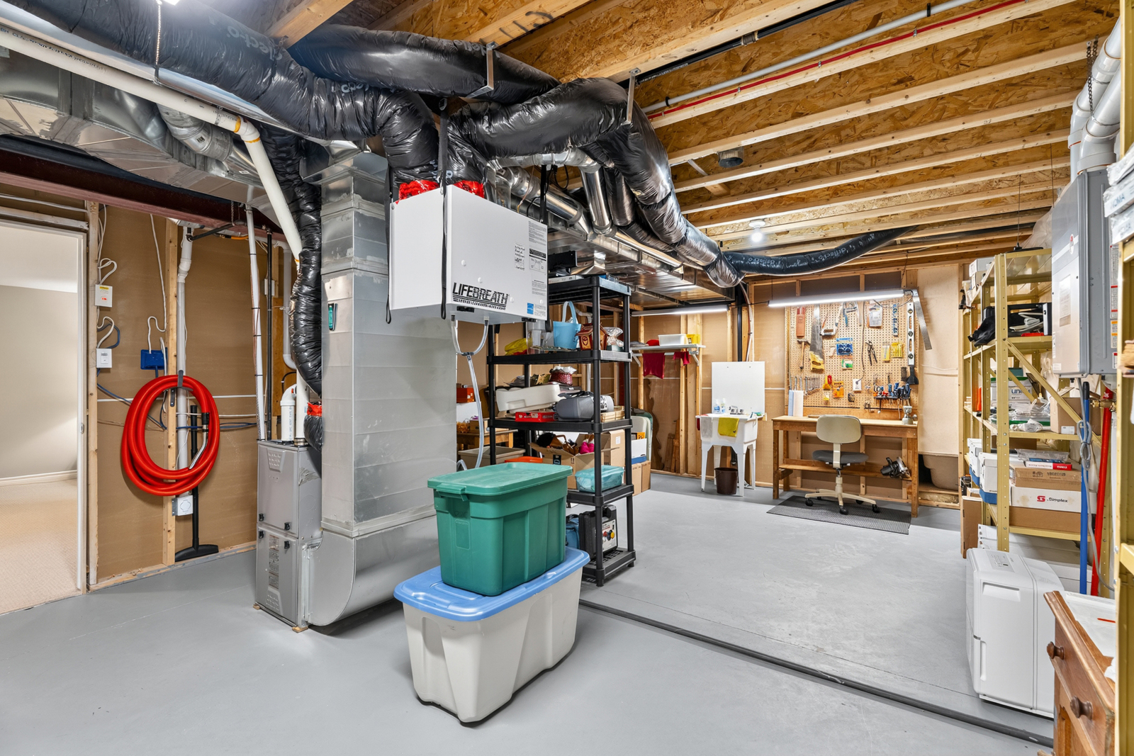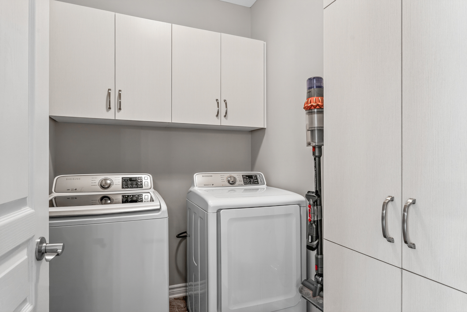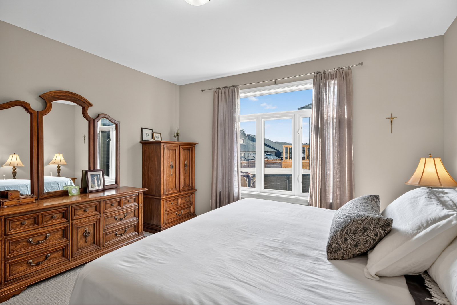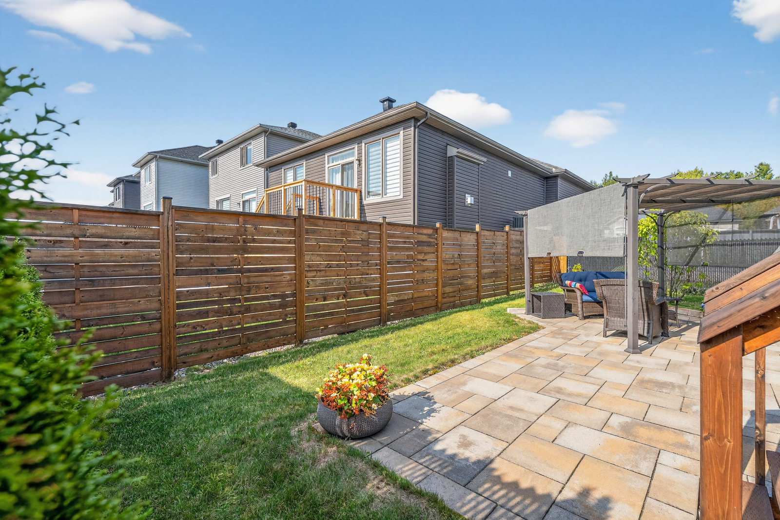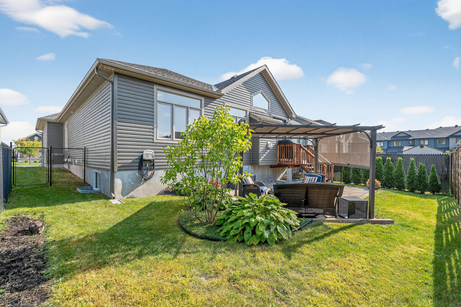 Downstairs, enjoy an additional 1,000 sq. ft. of finished space with a large rec room, a third bedroom, a 4-piece bathroom, and two storage rooms. Set on a premium wide lot, the fully fenced backyard is perfect for relaxing, complete with interlock patio, pergola, and privacy. The extra-wide oversized two-car garage with inside entry provides ample space for vehicles and gear. Peace of mind comes with practical upgrades, including a Generlink 30-amp transfer switch for generator hook-up and an Eaton whole-home surge protector. Built in 2017, this move-in ready home blends modern comfort with timeless style in one of Rockland's most desirable riverfront communities.