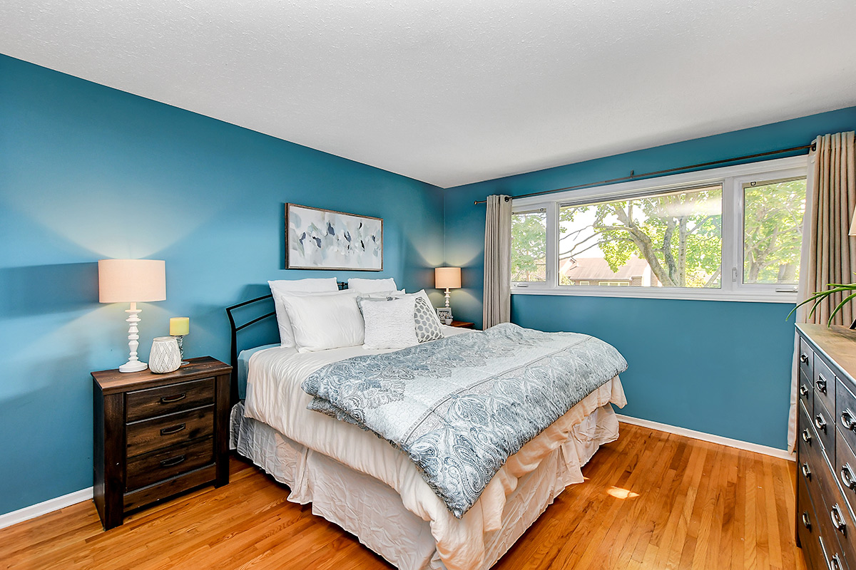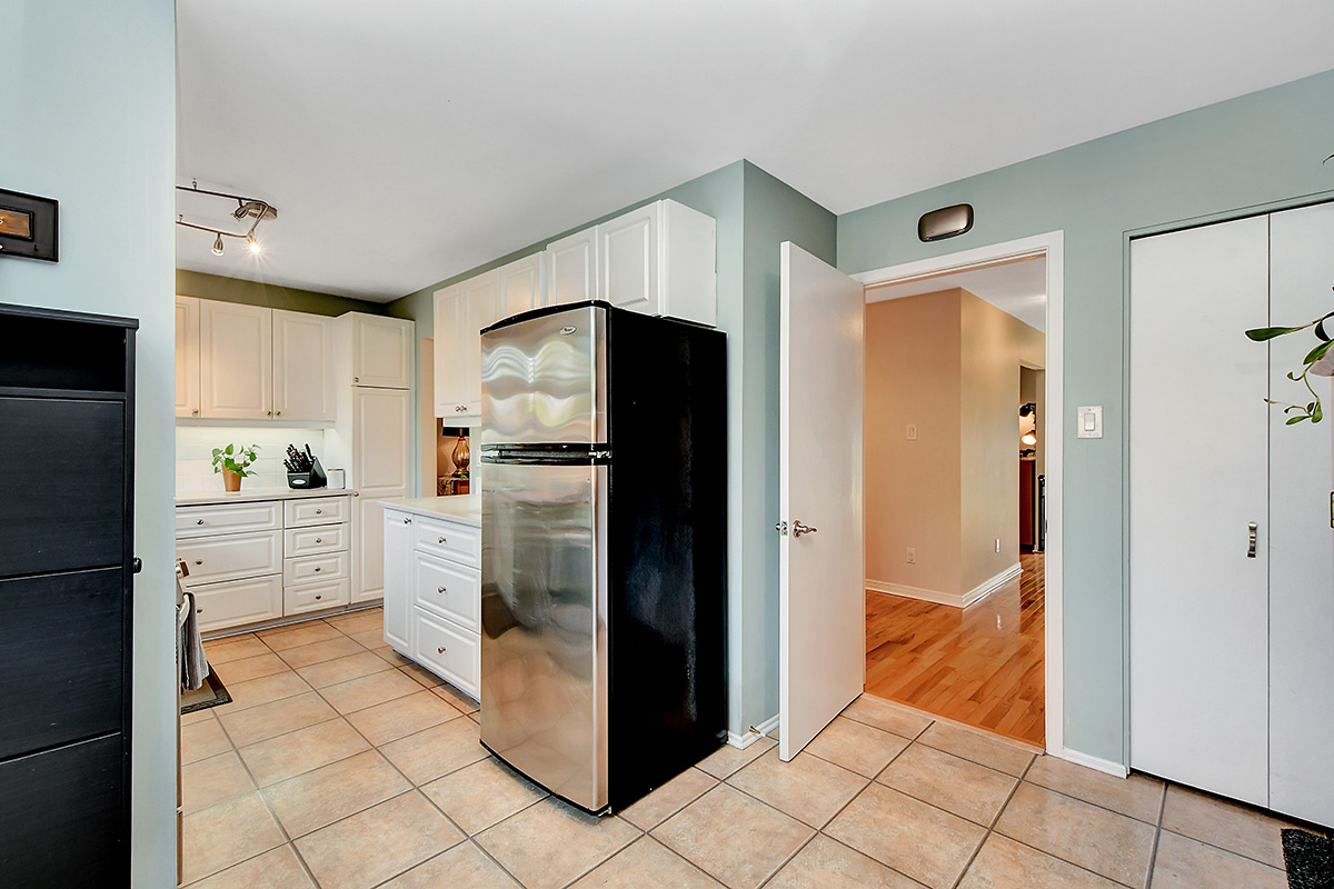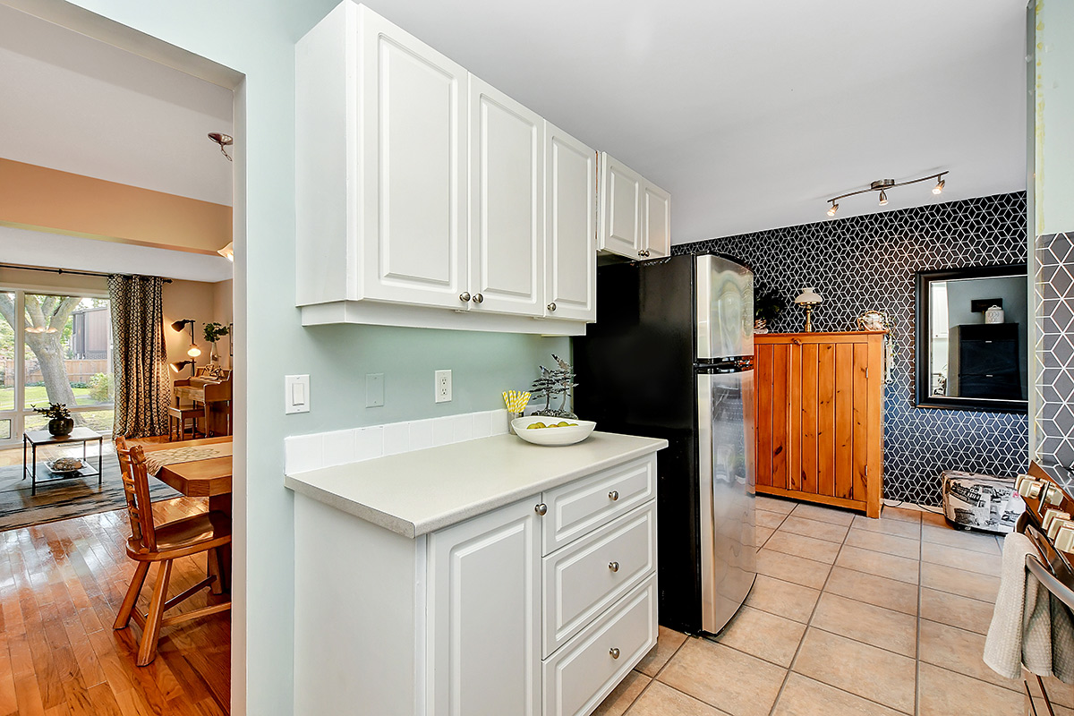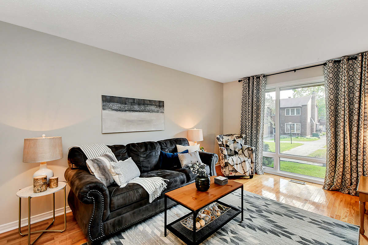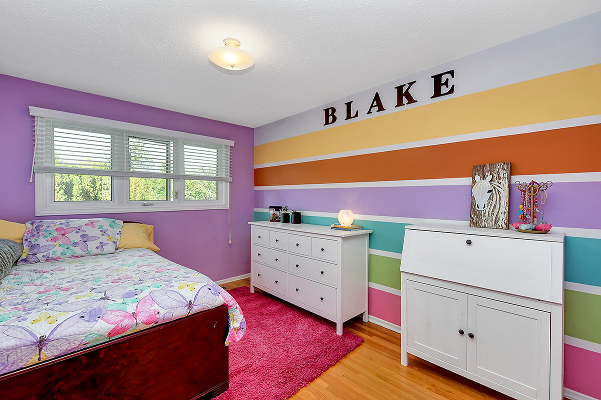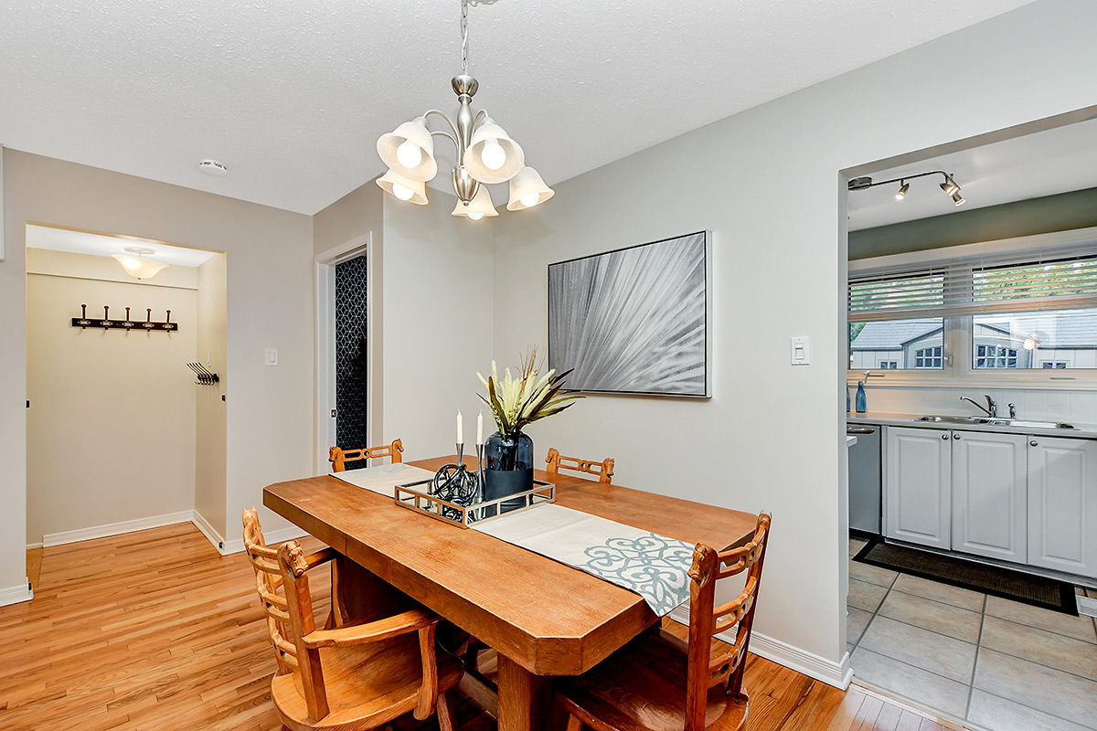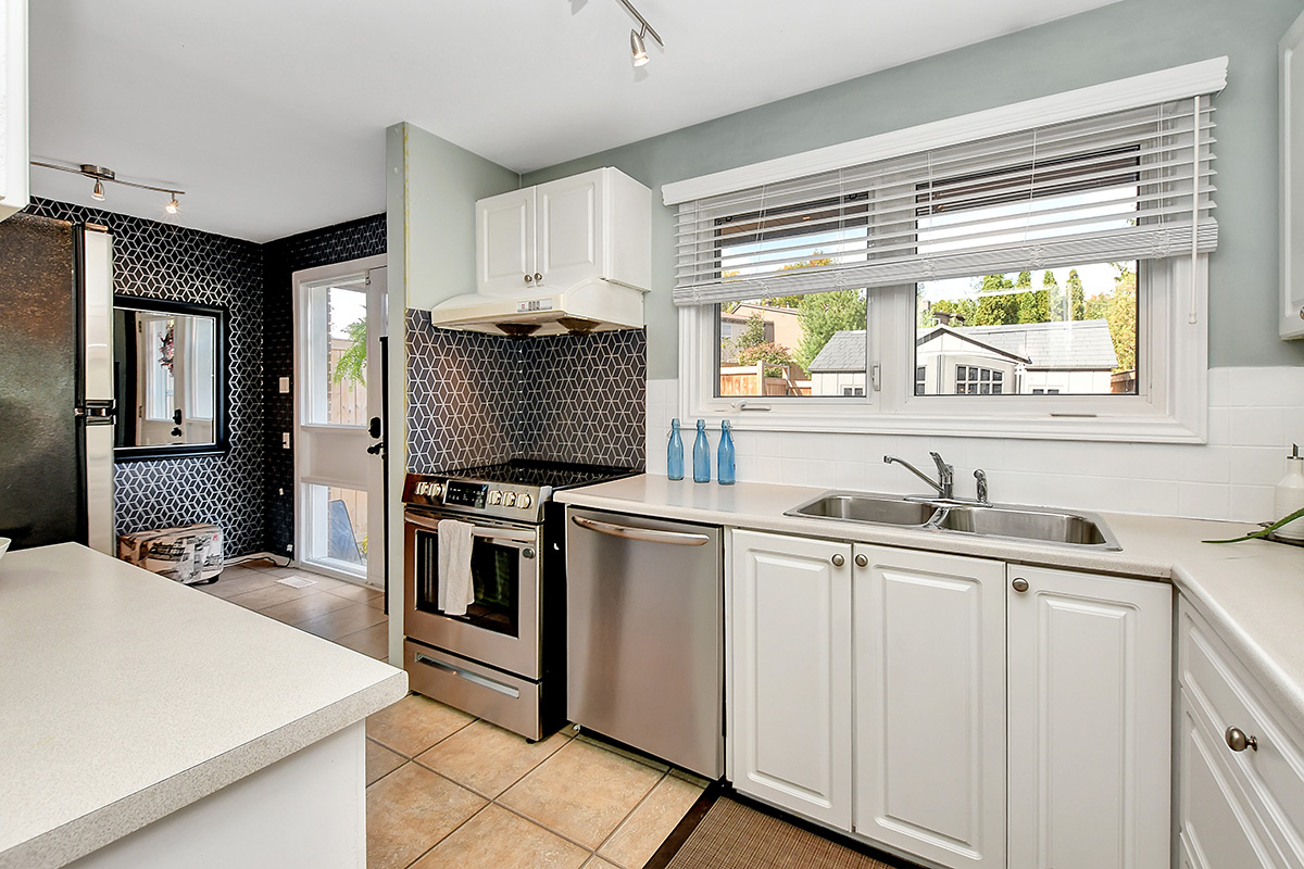 The home has hardwood throughout and is flooded with natural light & has been lovingly maintained & updated. It offers a spacious living room with a large window overlooking the courtyard adorned with mature trees & a play area. The updated kitchen offers newer stainless-steel appliances, has a great layout and plenty of cupboards & counterspace. Upstairs are 3 bedrooms with hardwood floors, a walk-in closet in the primary bedroom & a 4-pc bathroom. The basement has great space for living & storage: a large rec room, a storage/laundry rm w/ newer washer/dryer & a powder room. A/C: 2021. Furnace: 2018. HWT: 2017.