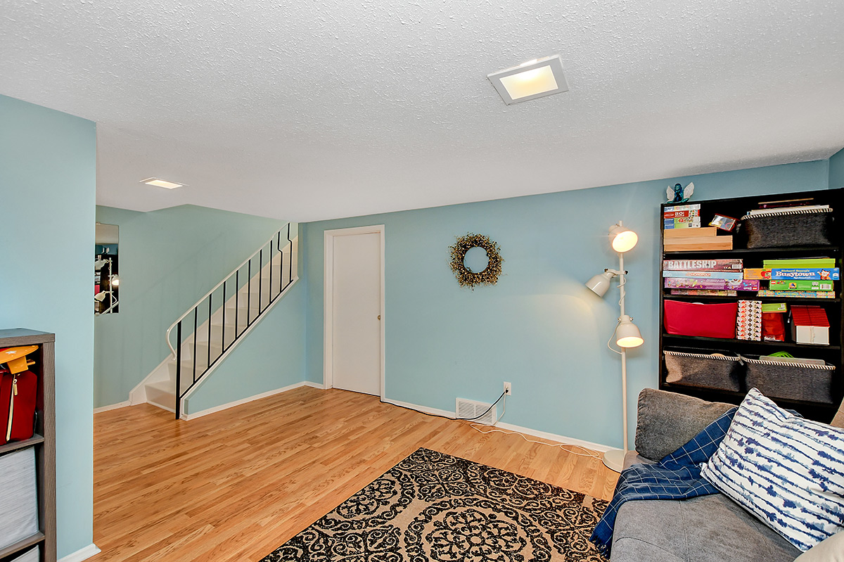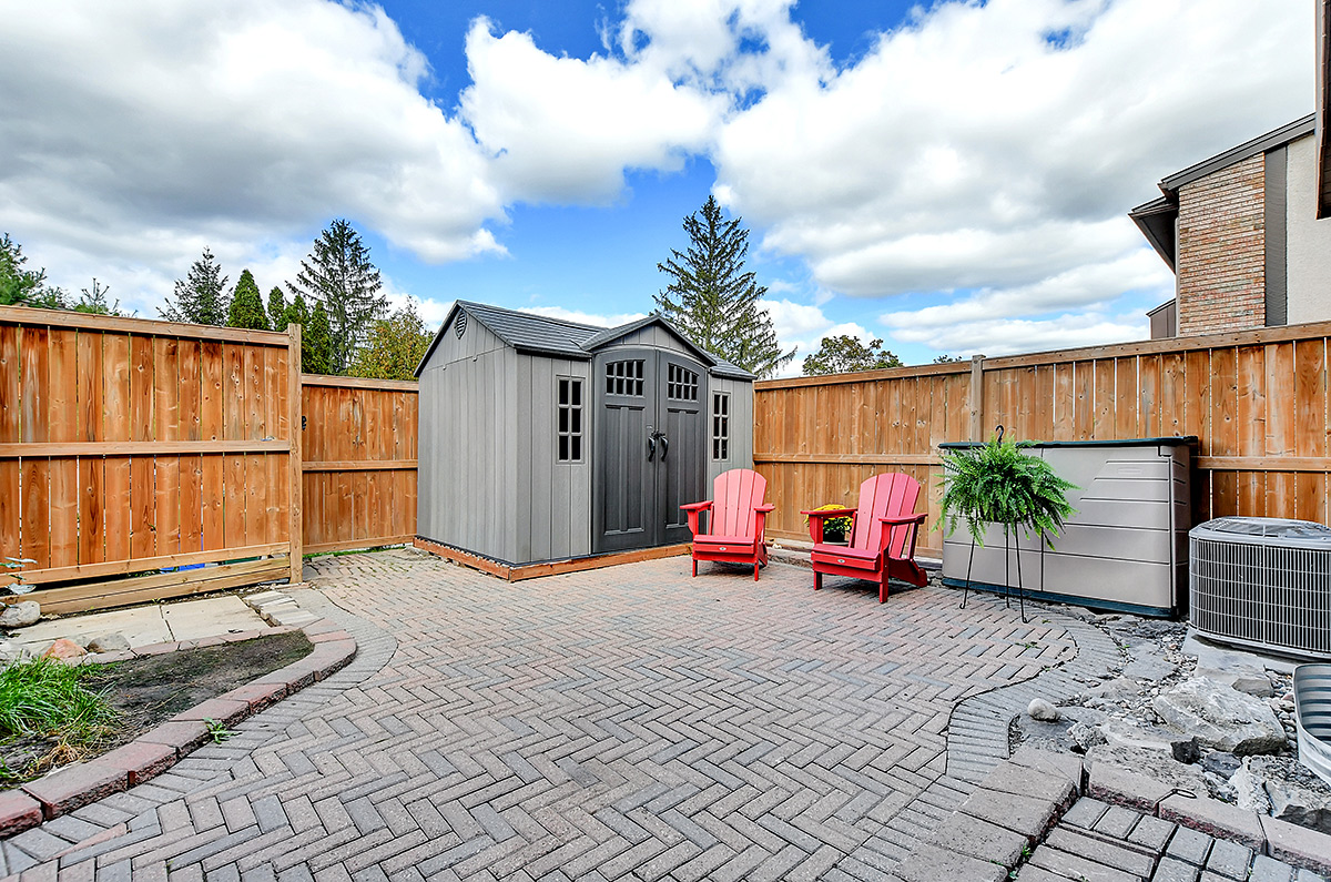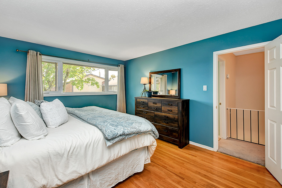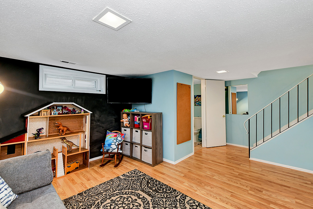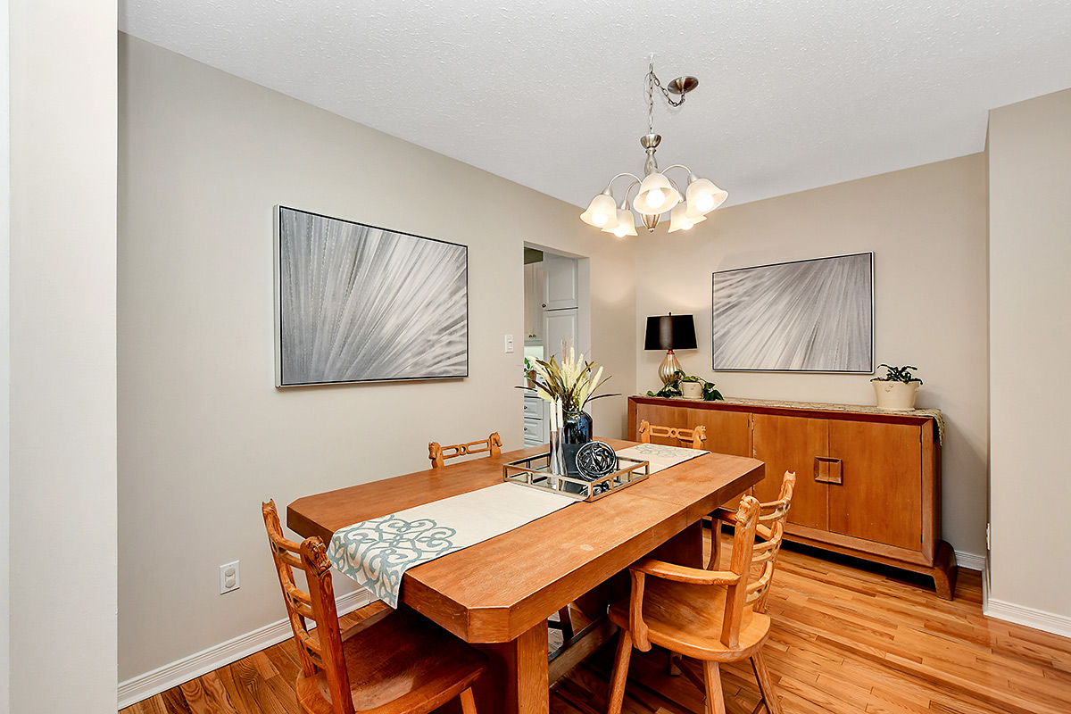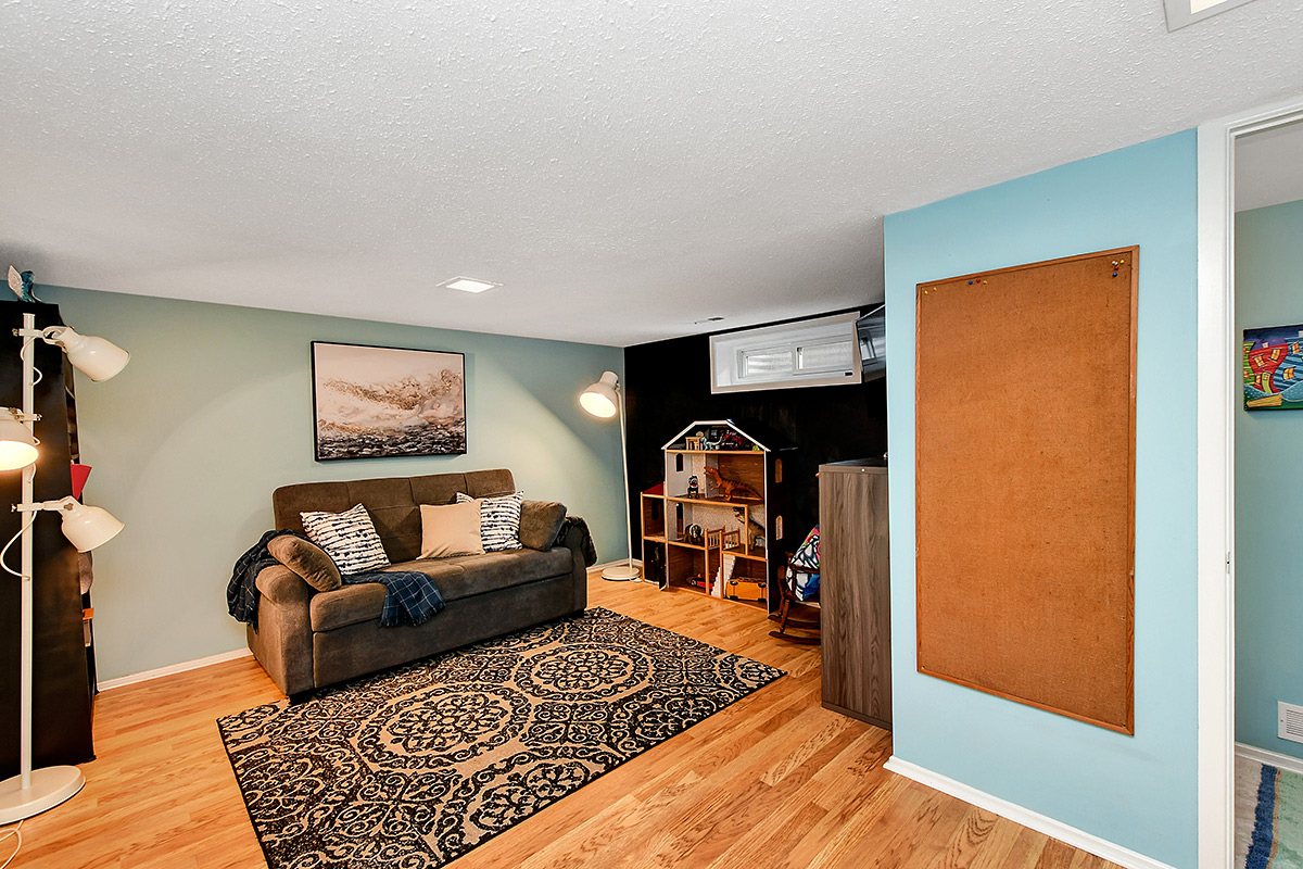 The home has hardwood throughout and is flooded with natural light & has been lovingly maintained & updated. It offers a spacious living room with a large window overlooking the courtyard adorned with mature trees & a play area. The updated kitchen offers newer stainless-steel appliances, has a great layout and plenty of cupboards & counterspace. Upstairs are 3 bedrooms with hardwood floors, a walk-in closet in the primary bedroom & a 4-pc bathroom. The basement has great space for living & storage: a large rec room, a storage/laundry rm w/ newer washer/dryer & a powder room. A/C: 2021. Furnace: 2018. HWT: 2017.