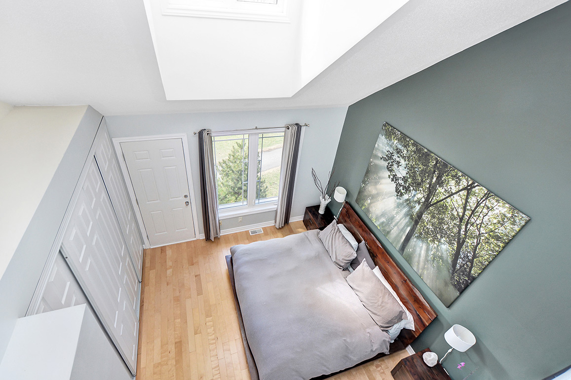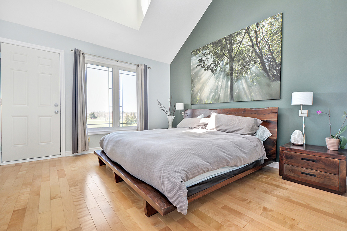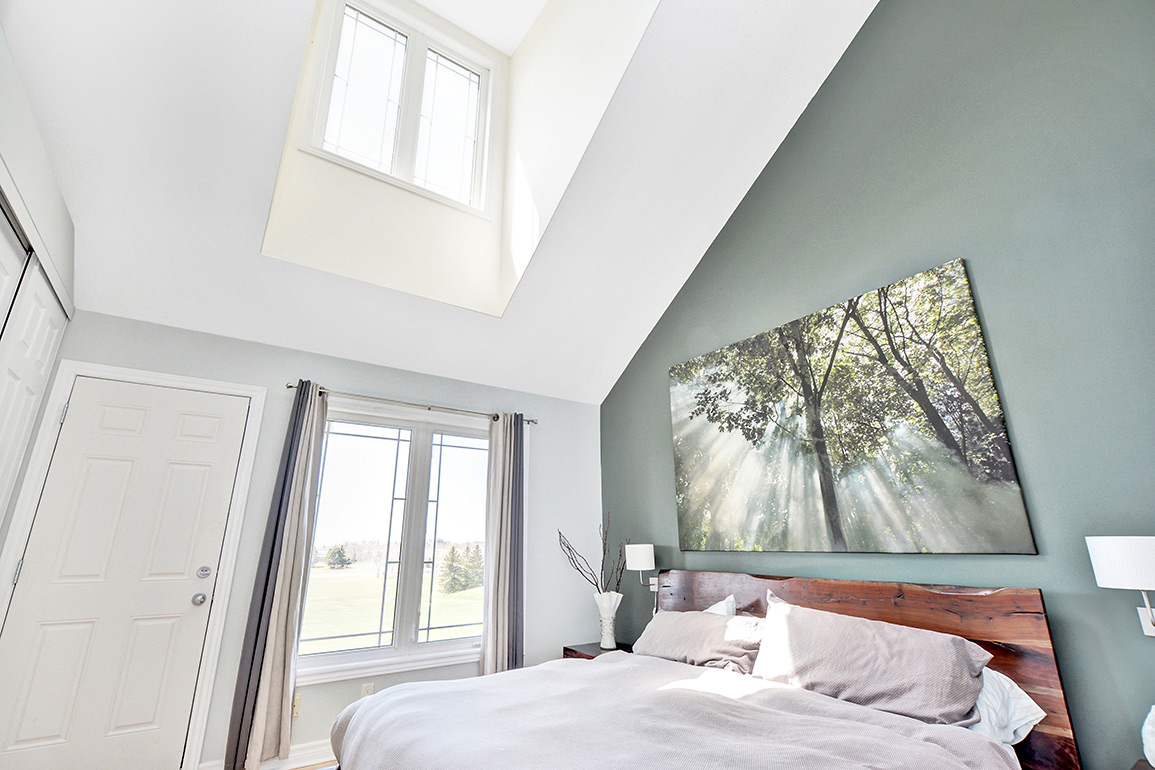 The master bedroom has vault ceilings allowing for additional windows and