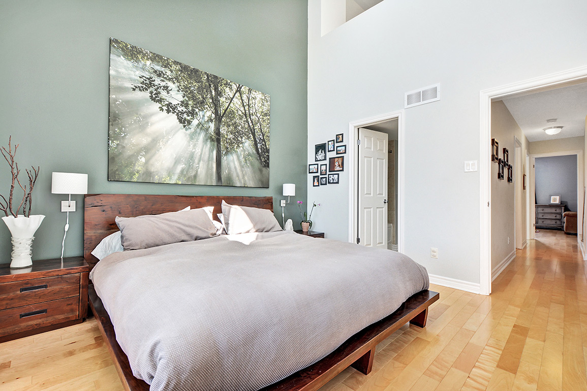 a 4-pc ensuite, 17-foot high ceilings and a private balcony overlooking Centrepointe park,