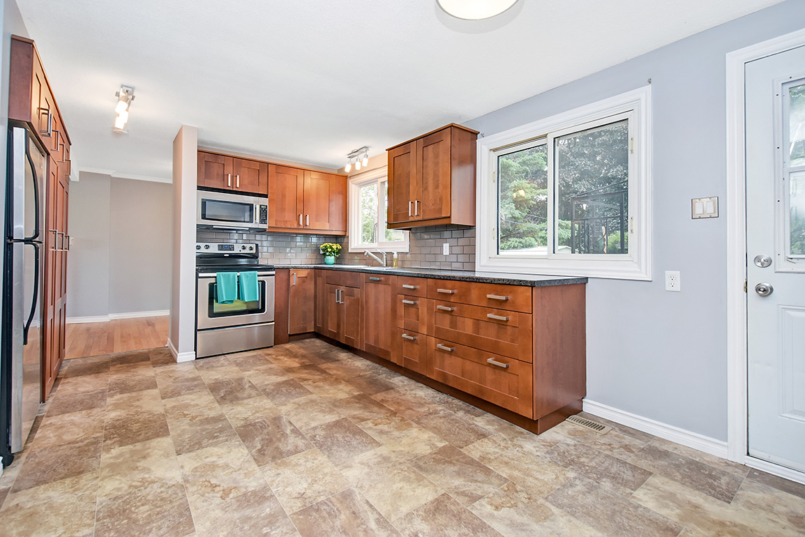 cabinets and stainless steel appliances, perfect for multi-tasking. The