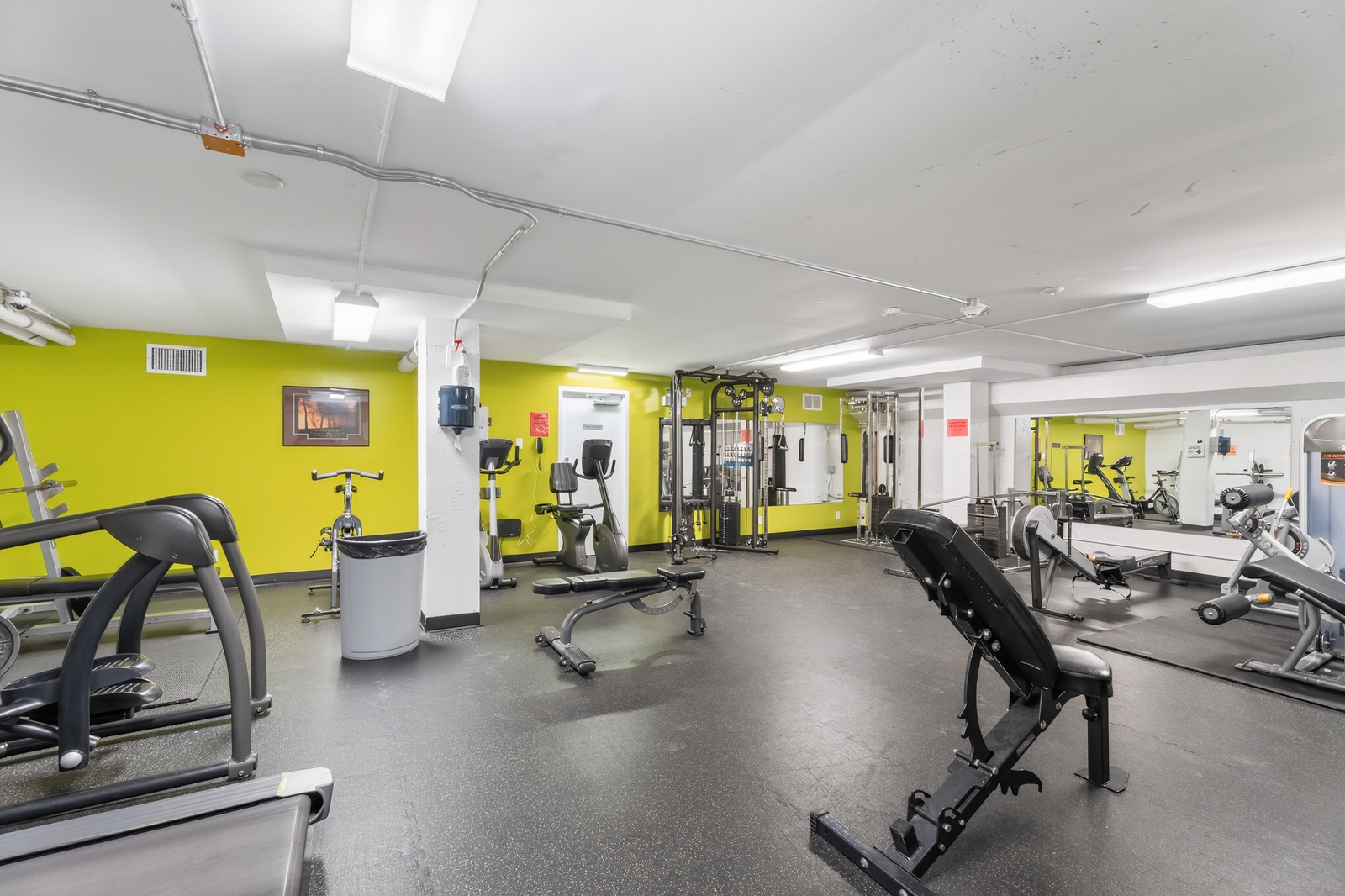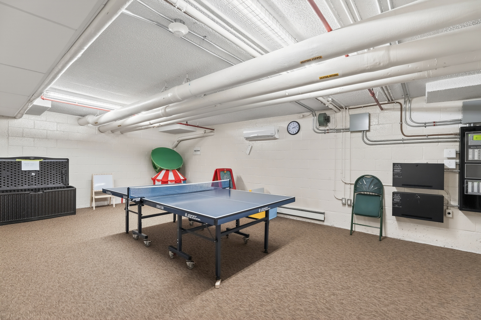 Two of the three bedrooms have balcony access, as does the living room. The primary suite has a walk-in closet and a full ensuite with an updated vanity and stand-up shower. The other two bedrooms are well-sized with good closet space, and there's a second full bath, in- unit storage, and underground parking. The building has more going on than most: indoor saltwater pool, gym, saunas, party room, hobby and workshop space, tennis courts, outdoor track, BBQ area, billiards, ping pong, library, and a guest suite.